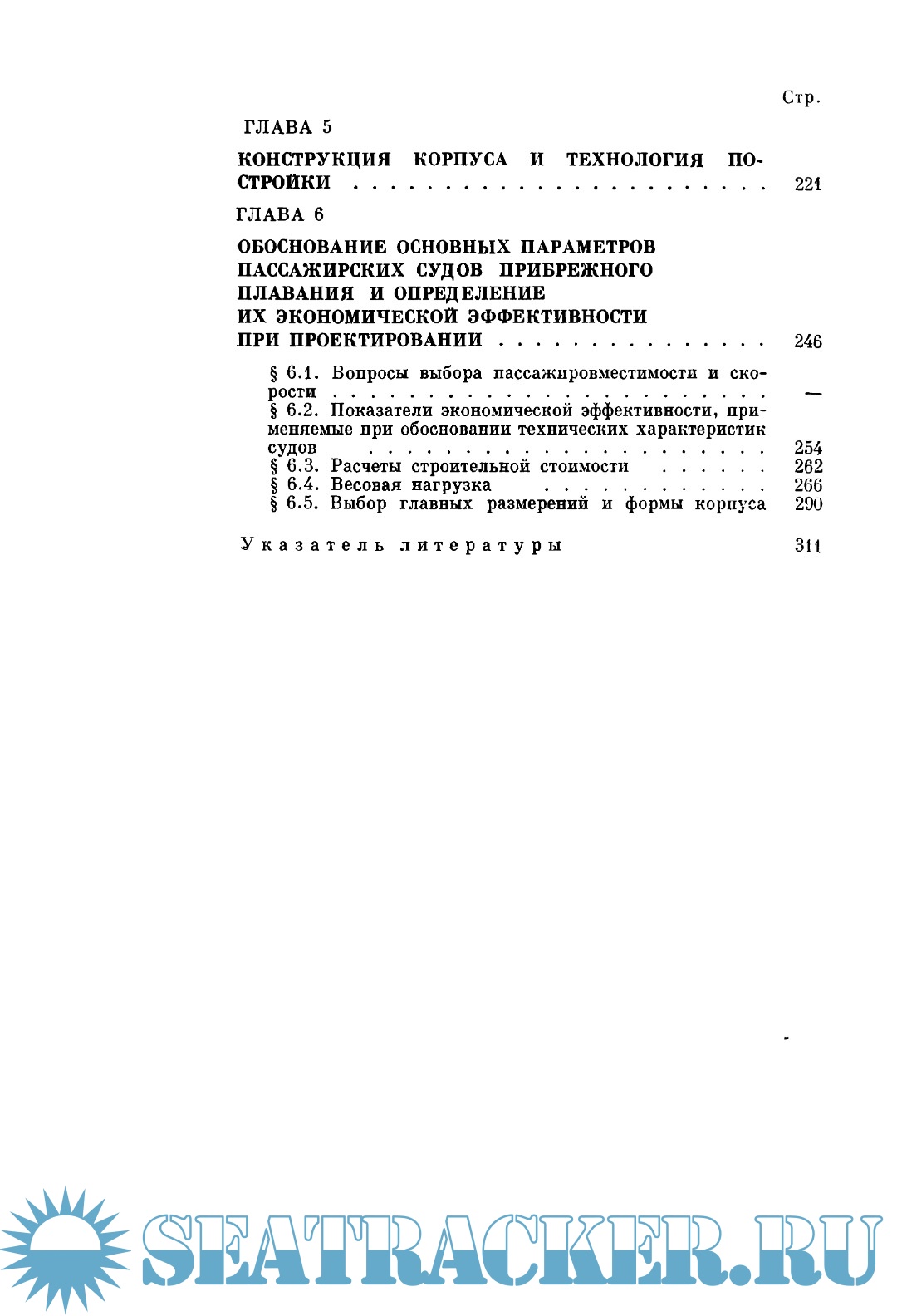 Предисловие. Развитие и классификация пассажирских судов прибрежного плавания. Компоновка и архитектура. Непотопляемость. Эффективность некоторых средств увеличения аварийной остойчивости. Применение внутреннего запаса плавучести. Ходкость и качка. Конструкция корпуса и технология постройки. Обоснование основных параметров пассажирских судов прибрежного плавания и определение их экономической эффективности при проектировании. Указатель литературы.