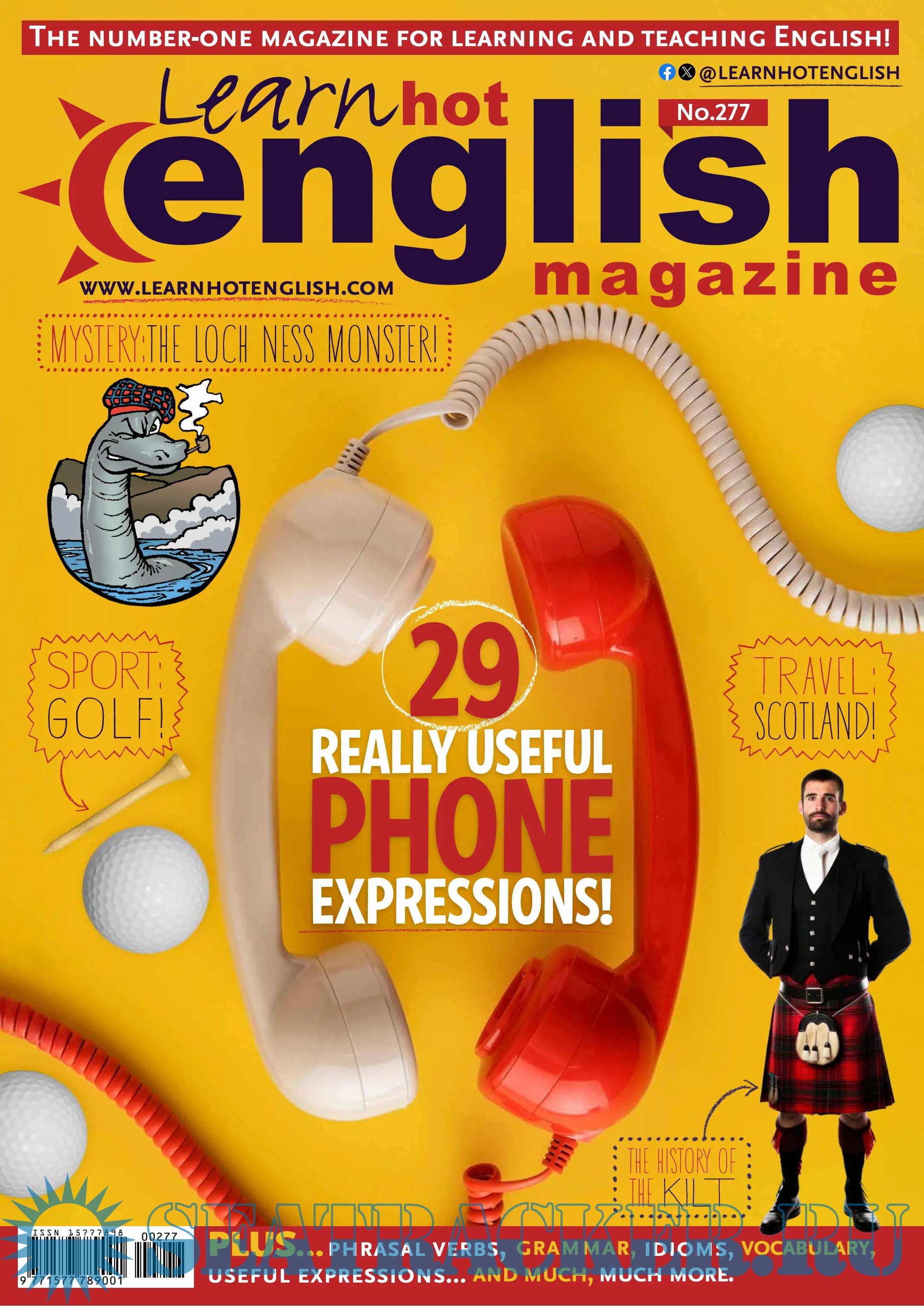 Description: Great news! The latest issue of Hot English (277) is out now! This month: Learn 29 really useful phone expressions! and LOTS, LOTS MORE!