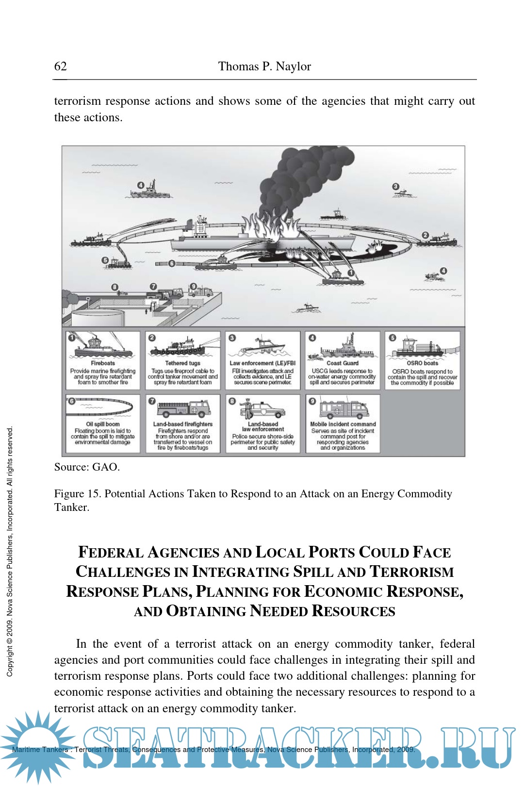 Description: U.S. energy needs rest heavily on ship-based imports. Tankers bring 55 per cent of the nation's crude oil supply, as well as liquefied gases and refined products like jet fuel. This supply chain is potentially vulnerable in many places here and abroad, as borne out by several successful overseas attacks on ships and facilities. This book addresses the types of threats to tankers and the potential consequences of a successful attack, measures taken to protect tankers and challenges federal agencies face in making these actions effective, and plans in place for responding to a successful attack and potential challenges stakeholders face in responding. The review spans several foreign and domestic ports, and multiple steps to analyze data and gather opinions from agencies and stakeholders. This is an excerpted and edited version of a GAO Report.