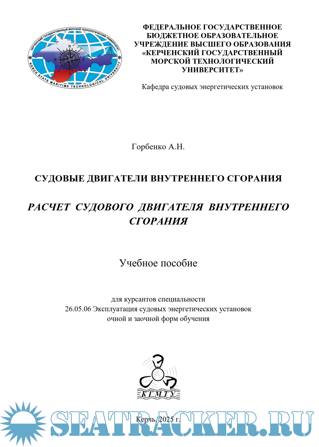 Горбенко А.Н. Судовые двигатели внутреннего сгорания. Расчет судового двигателя внутреннего сгорания, 2025.pdf