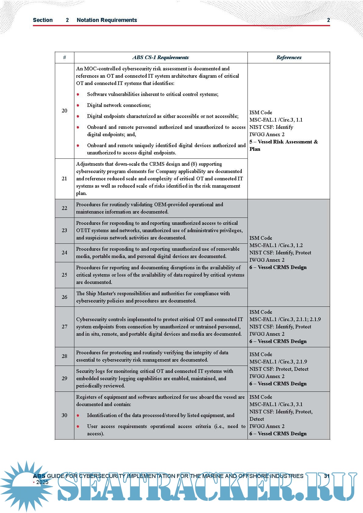 Year: 2025 Language: English Author: American Bureau of Shipping (ABS) Genre: Guide Publisher: ABS Edition: June 2025 Format: PDF Quality: eBook Pages count: 62 Description: This Guide provides cyber-related safety and security requirements and recommendations for the assessment of Company cybersecurity systems, as well as guidance for vessel readiness for preventing and managing cyber events that may compromise the safety and security of the data, systems, and vessels of a Company or organization. This document is Volume 2 of the ABS CyberSafety® series. It provides cyber-related safety and security requirements and recommendations for the assessment of Company cybersecurity systems. It also provides guidance for vessel readiness for preventing and managing cyber events that may compromise the safety and security of the data, systems, and vessels of a Company or organization. The notations presented in this Guide are offered to recognize cybersecurity protections aboard a vessel that reduce cyber risk and enhance cybersafety. The June 2025 version introduces requirements for the optional CR-Ex notation for existing vessels that establish a cyber security program that incorporates elements of Cyber Resilience requirements.