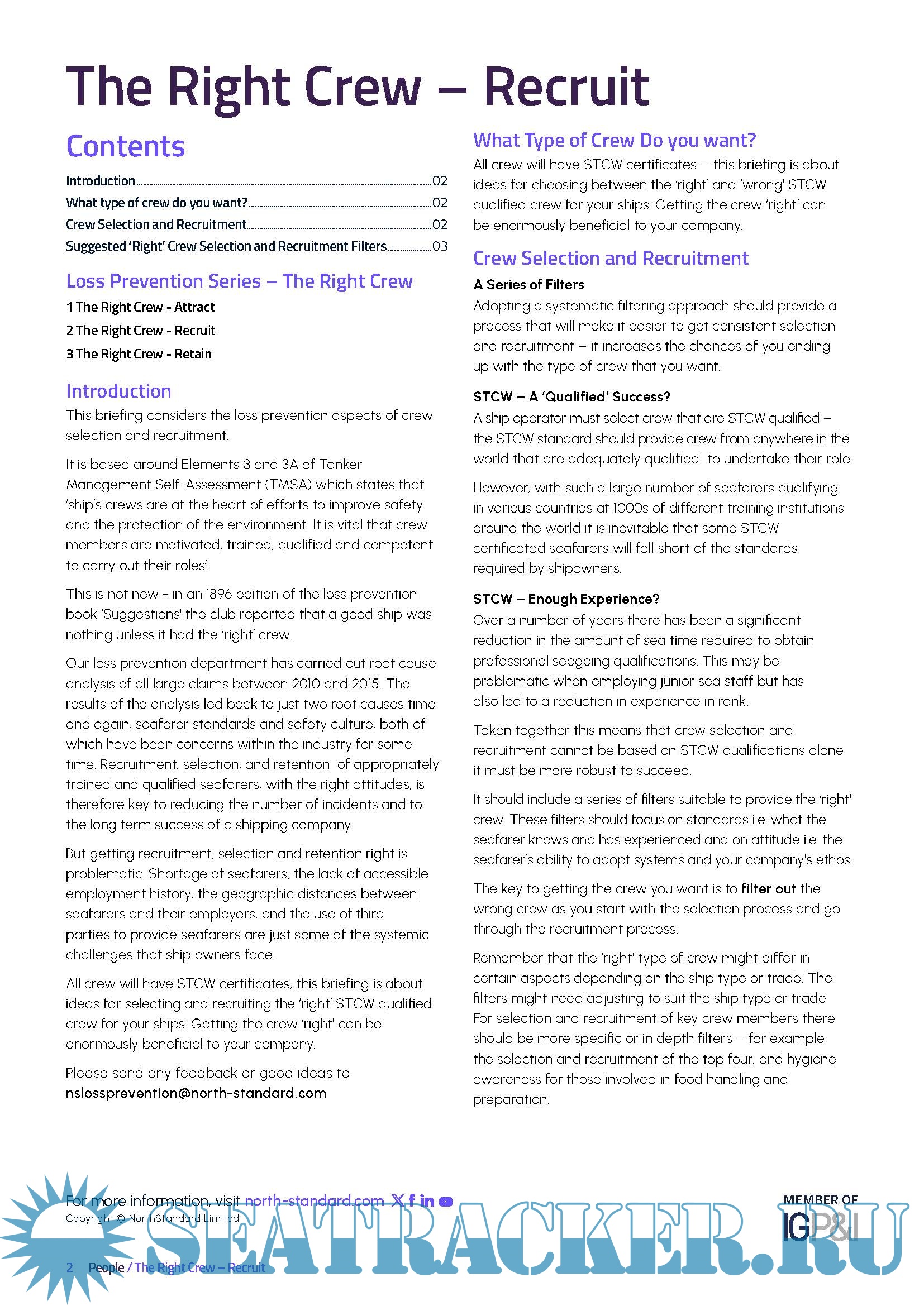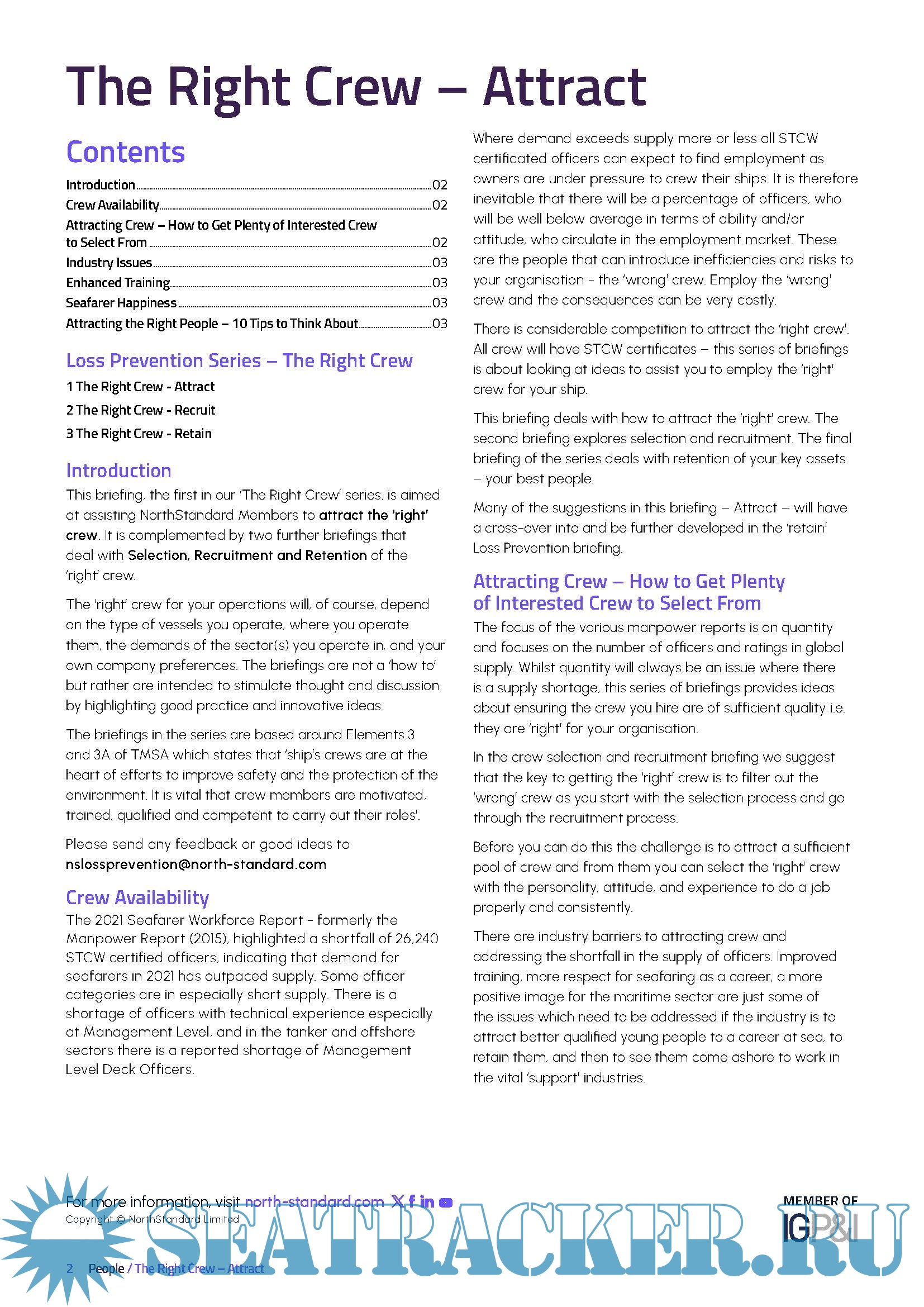 Description: The Right Crew – Briefing aimed at assisting NorthStandard Members to attract the ‘right’ crew.