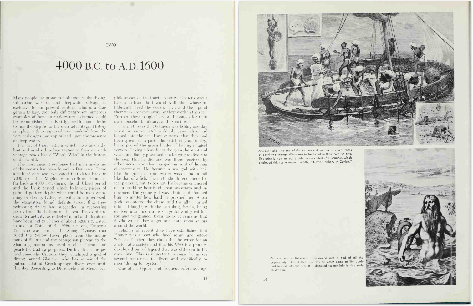 Description: Oceanography and space explorations are the last two frontiers mankind is now in the process of conquering. Of the two, oceanography is by far the most ancient, having had its beginnings in the days when Egyptian and Greek mariners, breathing through reeds, walked below the sea's surface to attack and sink enemy ships. These primitive war operations could well be considered the predecessors of modern atomic submarine warfare. So too could Alexander the Great's early descent to the ocean floor in a crudely constructed barrel be designated the forerunner of our modern SEALAB and TEKTITE submersibles and underwater habitats.