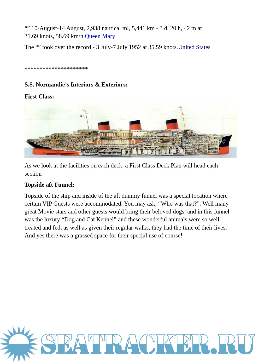 During 1935 and 1937, S.S. Normandie did hold the “Blue Riband” speed record for having achieved the fastest Trans-Atlantic crossings on five occasions, but the R.M.S. Queen Mary was her main rival as she kept on beating her at speed as well as passenger loading