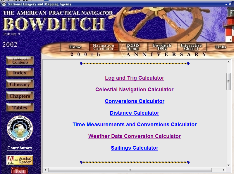 Description: Программа создана на основе книги Nathaniel Bowditch "The American practical navigator" которая также присутствует в раздаче. Автор раздачи об этой книге написал так: "Одно из лучших (по моему скромному мнению) пособий для судоводителей, в котором рассмотрены многие практические вопросы работы без излишней "засоренности" формулами, интегралами и т.п. ", в чем я с ним согласен.