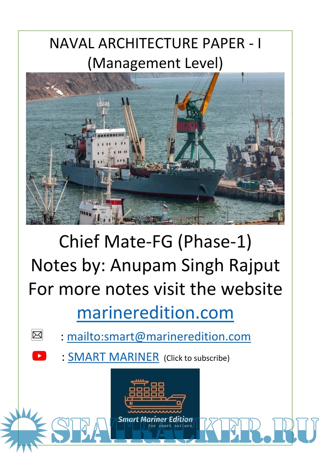 Description: The vision and mission of SMART MARINER EDITION to guide all the mates to prepare for their competency examination. The intention is to provide a short, meaningful, easy understandable answers of all the questions which may be asked in the written/oral examinations.