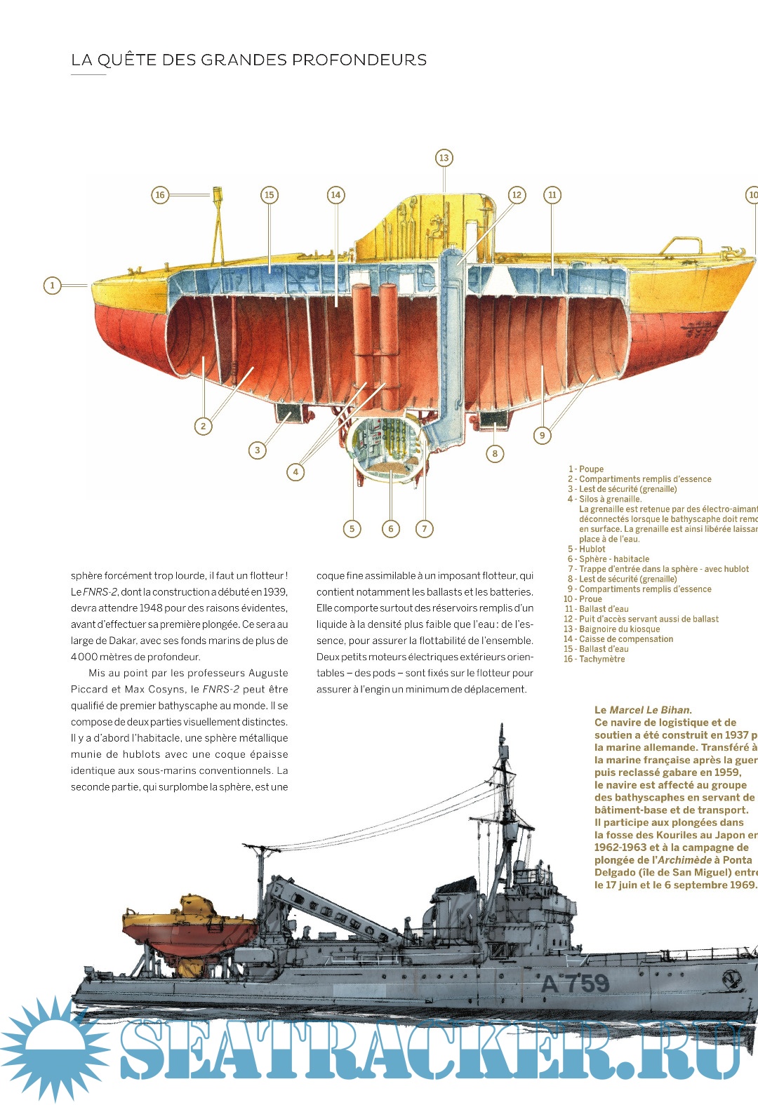 Но история подводных лодок не только военная, но и научная, связанная с исследованием морского дна. Хотя суша уже не таит в себе много сюрпризов, подводные глубины отчасти остаются Terra Incognita, или, скорее, Mare Incognita. На борту своего батискафа «Триест» Огюст Пиккар в 1960 году успешно спустился в Марианскую впадину, самую глубокую в мире (более 10 900 м).