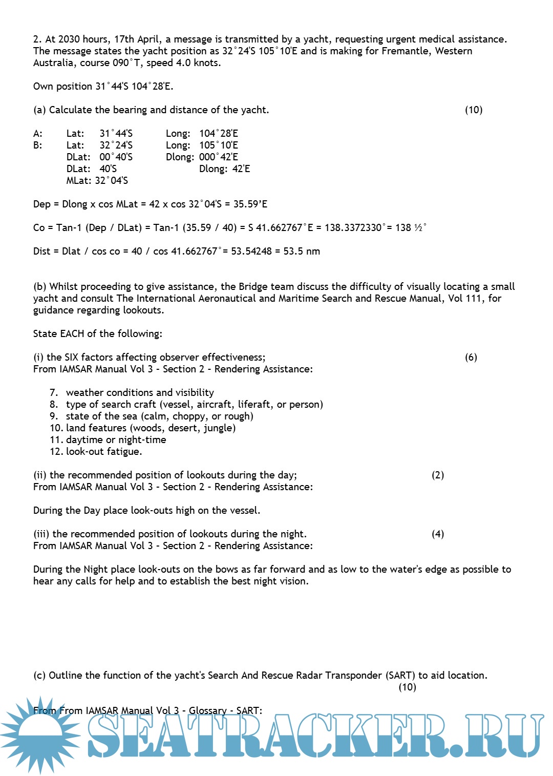 Phase I - Terrestrial & Coastal Navigation - Solved Part C: Q. 7 & 8 (Jan 2025 ~ Jan 2018) from…