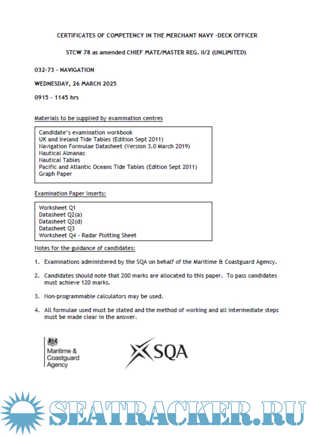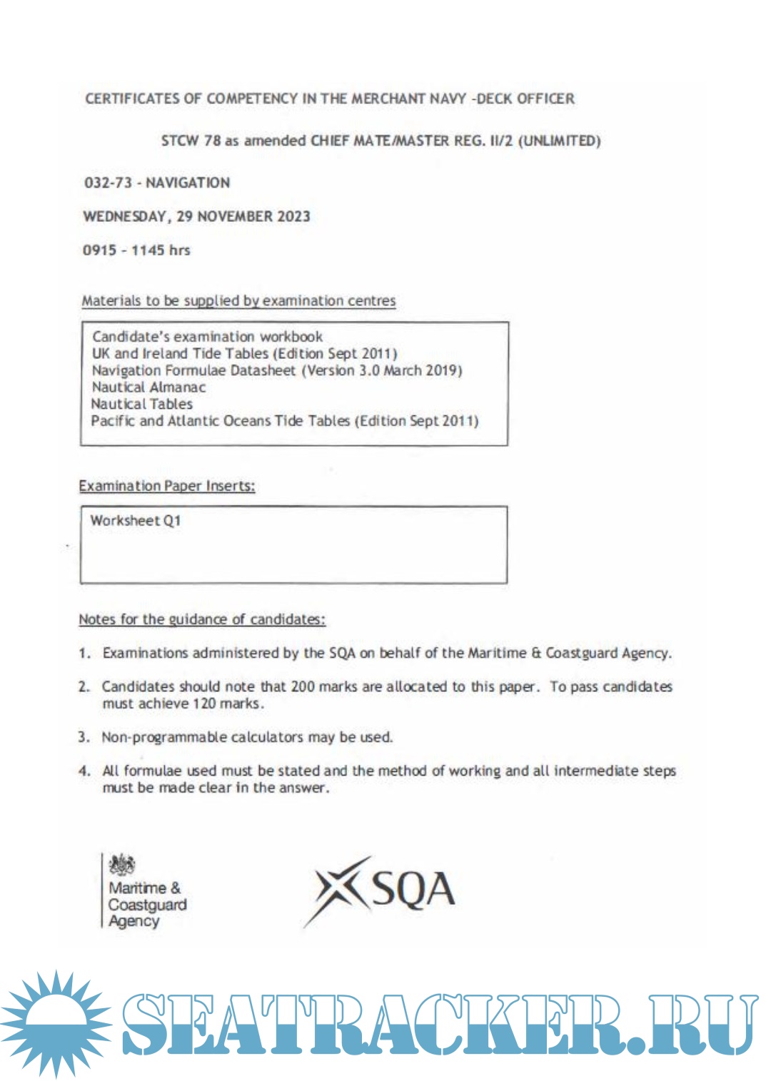 Solved Numericals (2019-2007) - Past Question Papers Mercantile Marine Department (MMD), India…
