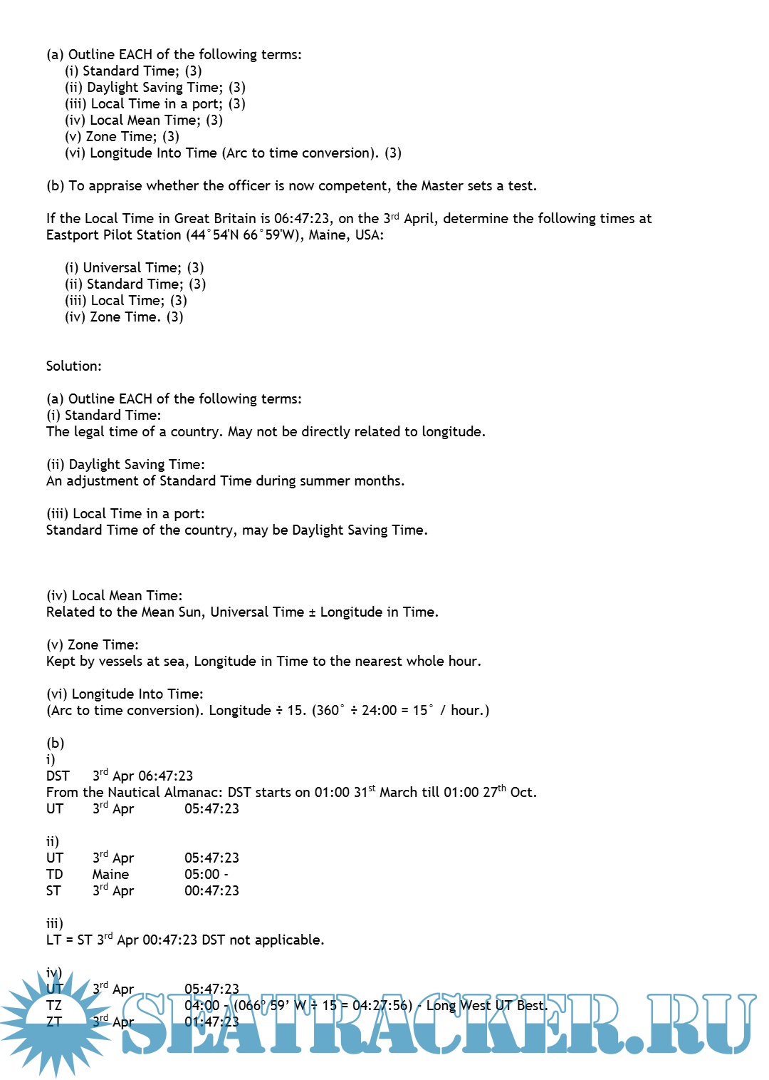 Solved Numericals Last 10 Years - Past Question Papers Mercantile Marine Department (MMD), India…