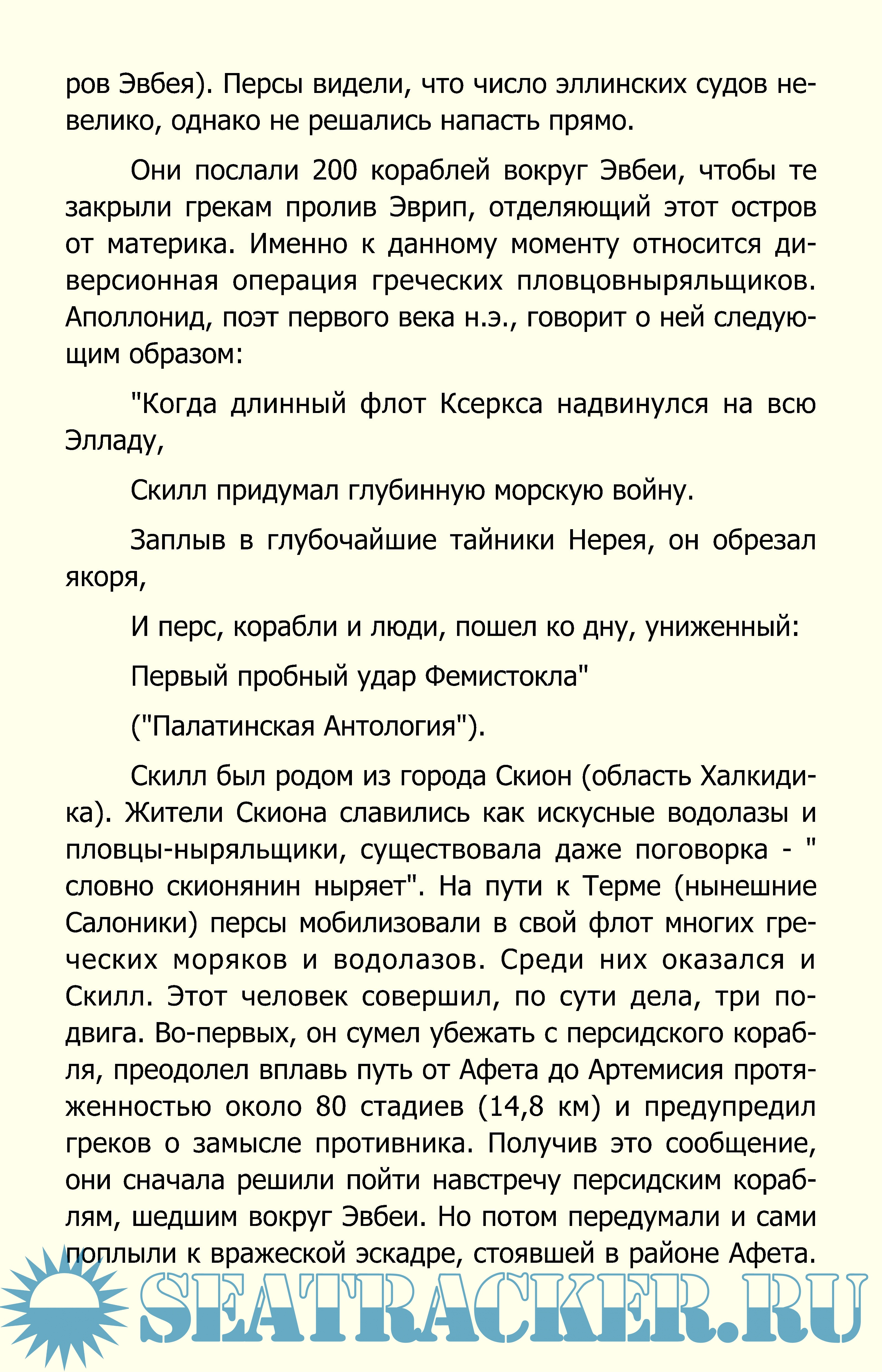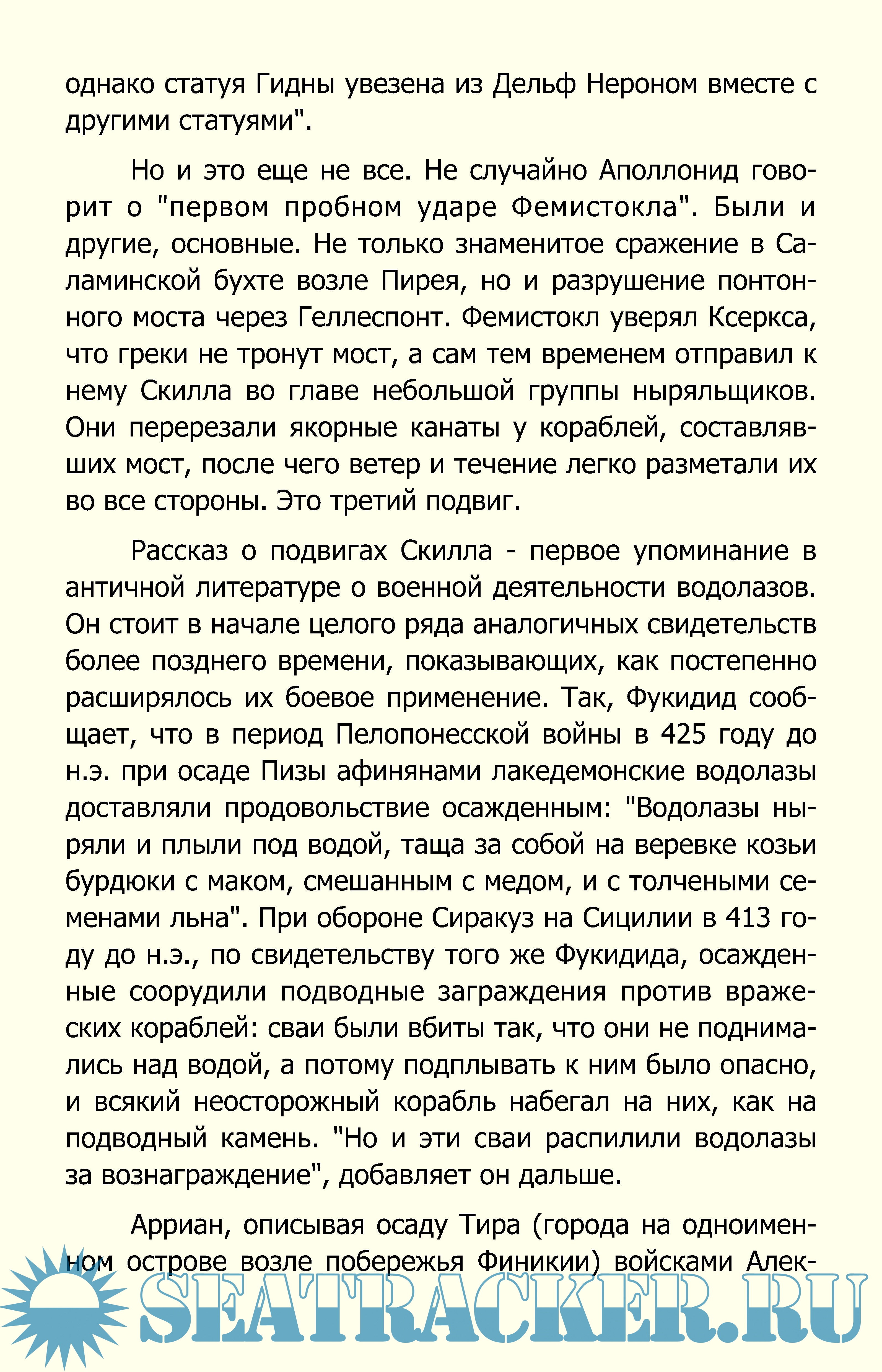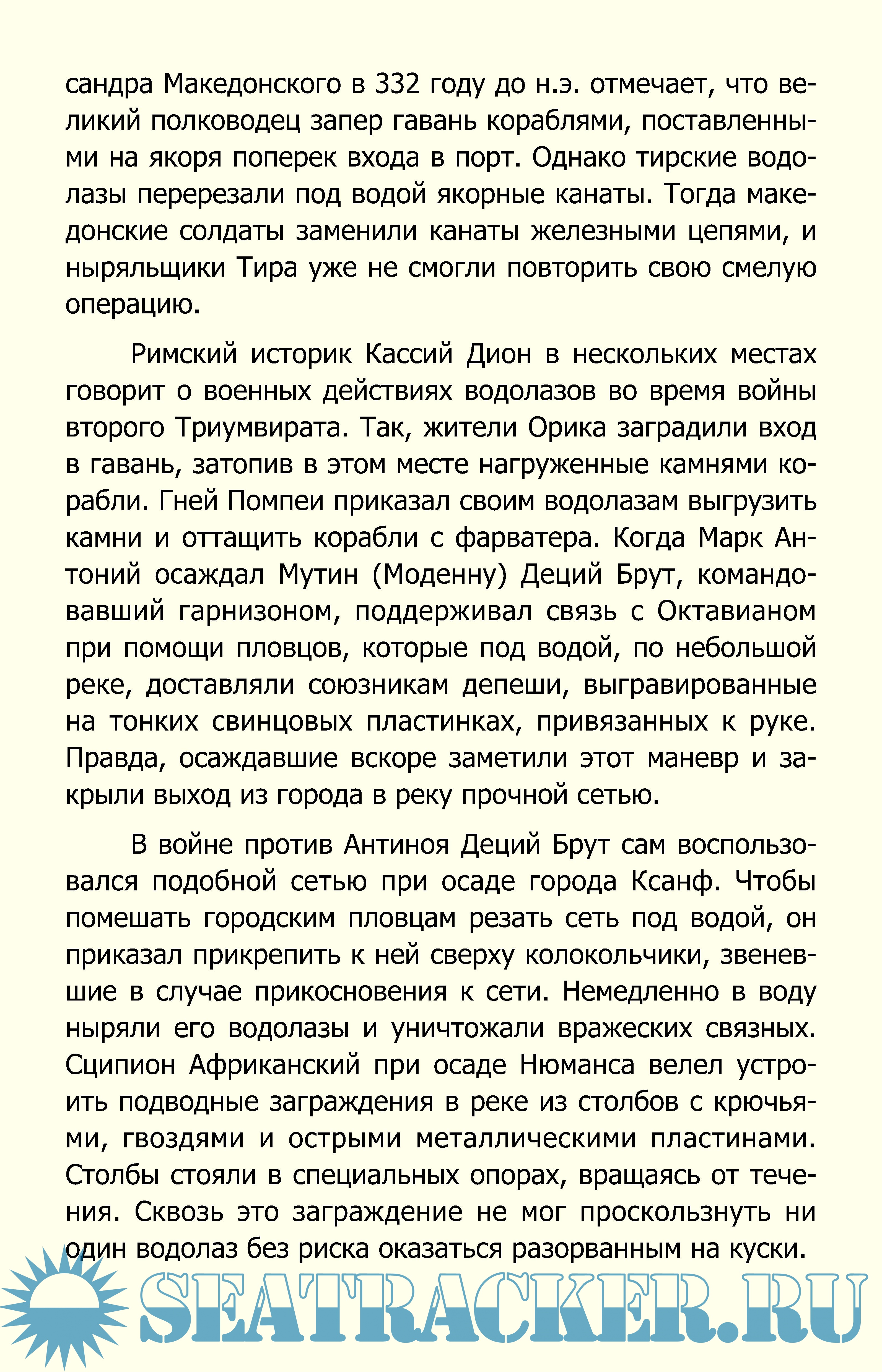 Описание: В этой книге содержится немало сведений исторического характера. Однако было бы неправильно считать ее исследованием по истории морской войны. Перед составителем стояла иная задача. Он стремился на исторических примерах раскрыть суть проблем подводного плавания, технического оснащения пловцов-подводников, методов обучения и боевого применения подводных разведчиков-диверсантов.