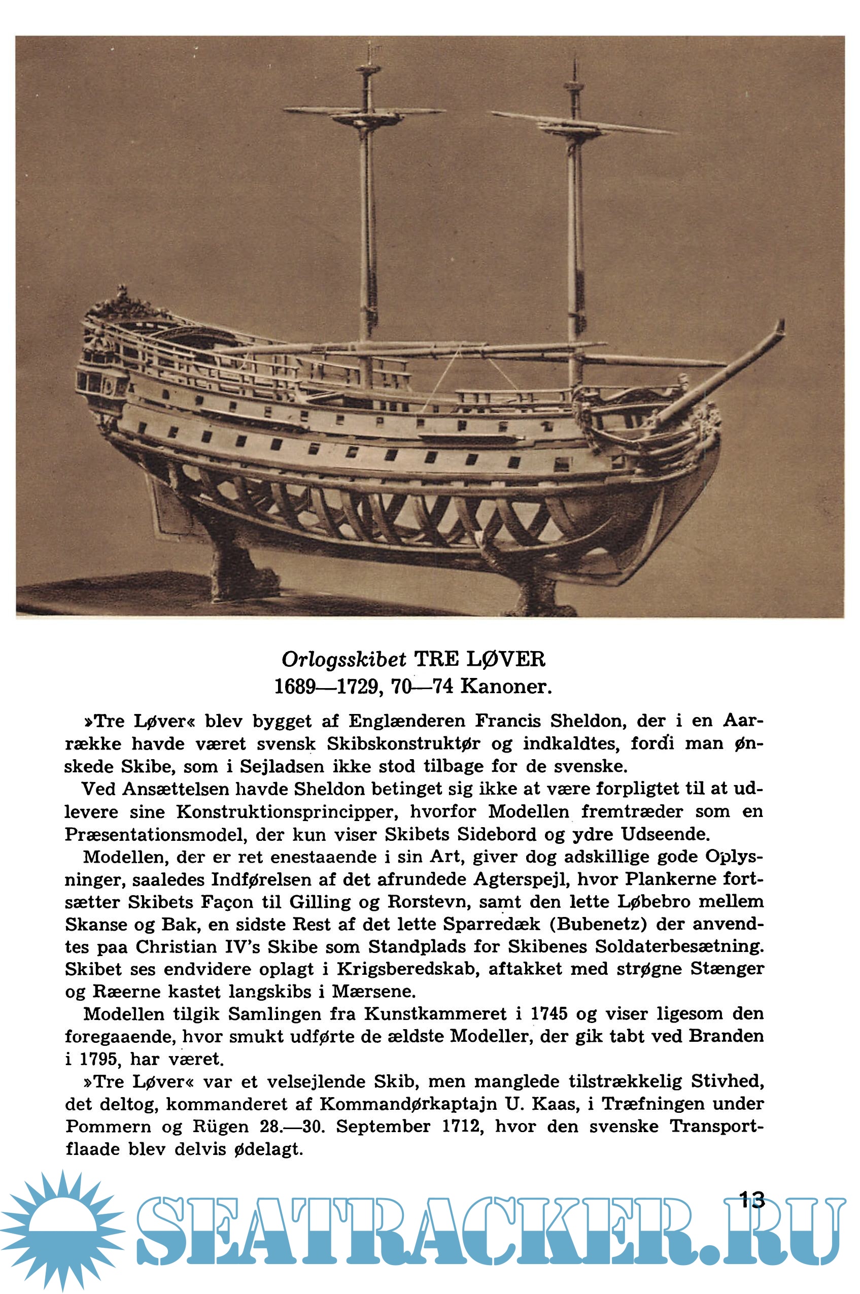 Description: Den historiske Modelsamling paa Holmen blev oprettet i 1670, da Bygningen af danske Orlogsskibe;som hidtil for en væsentlig Del var foregaaet paa Værfter i Landets skovrigeste Egne, nu blev henlagt til Orlogsværftet paa Bremerholm. Fremstillingen af Skibsmodeller til Brug for Skibsbygningen i et bestemt Maalestoksforhold - de saakaldte Skalamodeller - var imidlertid ikke noget nyt, men kan fØlges lige saa langt tilbage i Tiden som Bygningen af egentlige Orlogsskibe. Modellerne blev forevist Kongen, forinden der blev taget Bestemmelse om de større Skibes Bygning, saaledes fik Kongen i 1555 paa Nyborg Slot tilsendt Modellen til den ny Orlogsbark, der skulde bygges i KØbenhavn, og i 1560 • blev der udset en dygtig Skibsbygger til at forfærdige en Model af Orlogsskibet sFortunae, 2 Alen lang med Rejsning og andet Tilbehør. Modellerne opbevaredes paa Landets Slotte til Efterretning for fremtidig Skibsbygning paa de nærliggende Værfter, indtil Chr. IV ved Bygningen af Frederiksborg Slot lod indrette en imponerende Modelsal - den kgl. Skibssal - i Slottets 3. Etage.