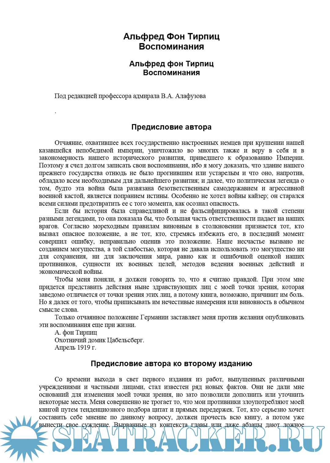 Автор: А. фон Тирпиц