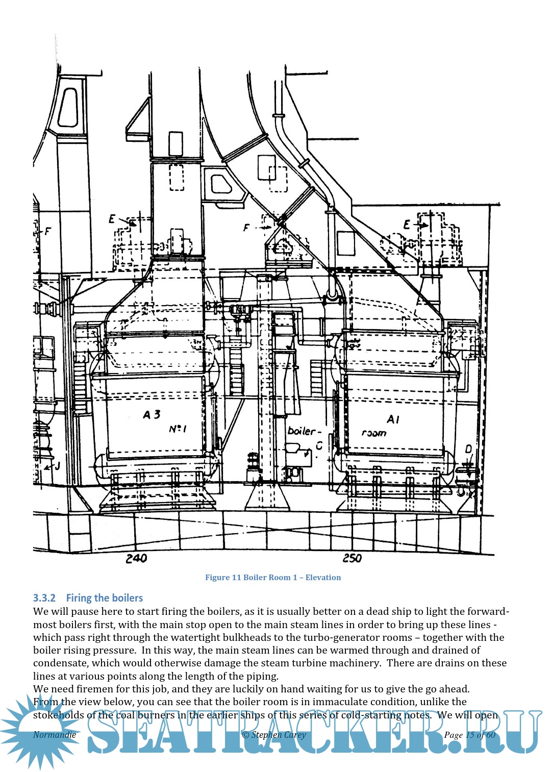 Description: This document is almost exclusively about the engineering aspects of the Normandie, mainly on how to start her up from cold.