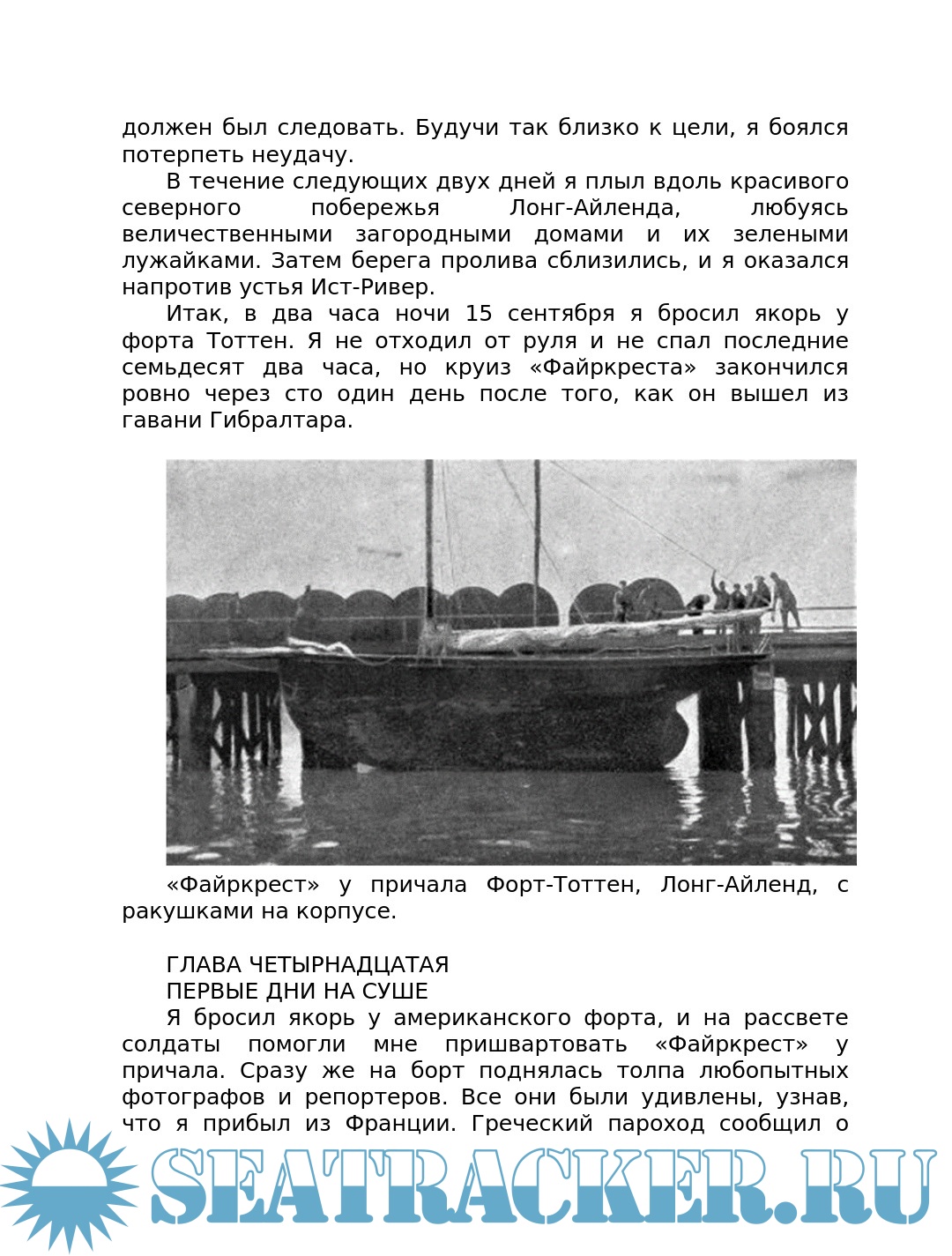 Описание: Ален Жербо (1893-1941) французский моряк, писатель и чемпион по теннису, совершивший кругосветное плавание в одиночку. В конце концов он осел на островах южной части Тихого океана, где написал несколько книг об образе жизни островитян. В книге «The fight of the Firecrest» (Битва Файркреста) он описывает своё одиночное плавание через Атлантику на яхте «Файркрест» из Гибралтара в Нью-Йорк в 1923 году за 101 день.