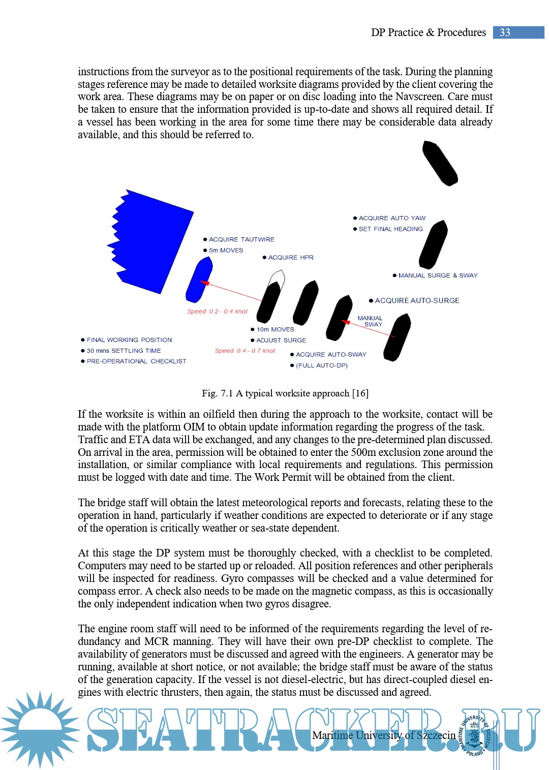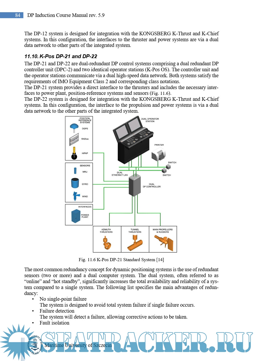 Description: Dynamic Positioning (DP) Operator’s Induction Course in Maritime University of Szczecin is provided solely on Norwegian Kongsberg’s simulators and trainers. Therefore all lectures, theory and practical exercises are based on Kongsberg’s DP philosophy. The main source for this manual are Capt. D. J. Bray publication, IMCA guidelines, NI guidelines and certification scheme and Kongsberg’s manuals. During the course participants will have their own Kongsberg operator stations with generic DP software (class C simulator equipment).