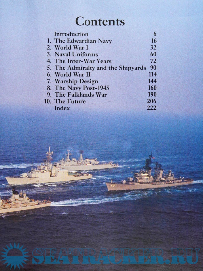 Description: Discusses the progress and changes in the British Royal Navy since 1900, with special sections on uniforms, warship design, and the relationship of the Admiralty with the shipyards, as well as the wars and battles
