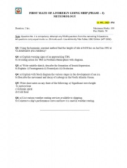 Description: Question paper set for Meteorology Mercantile Marine Department (MMD), India Exams for Phase I - Chief Mate (F.G.).