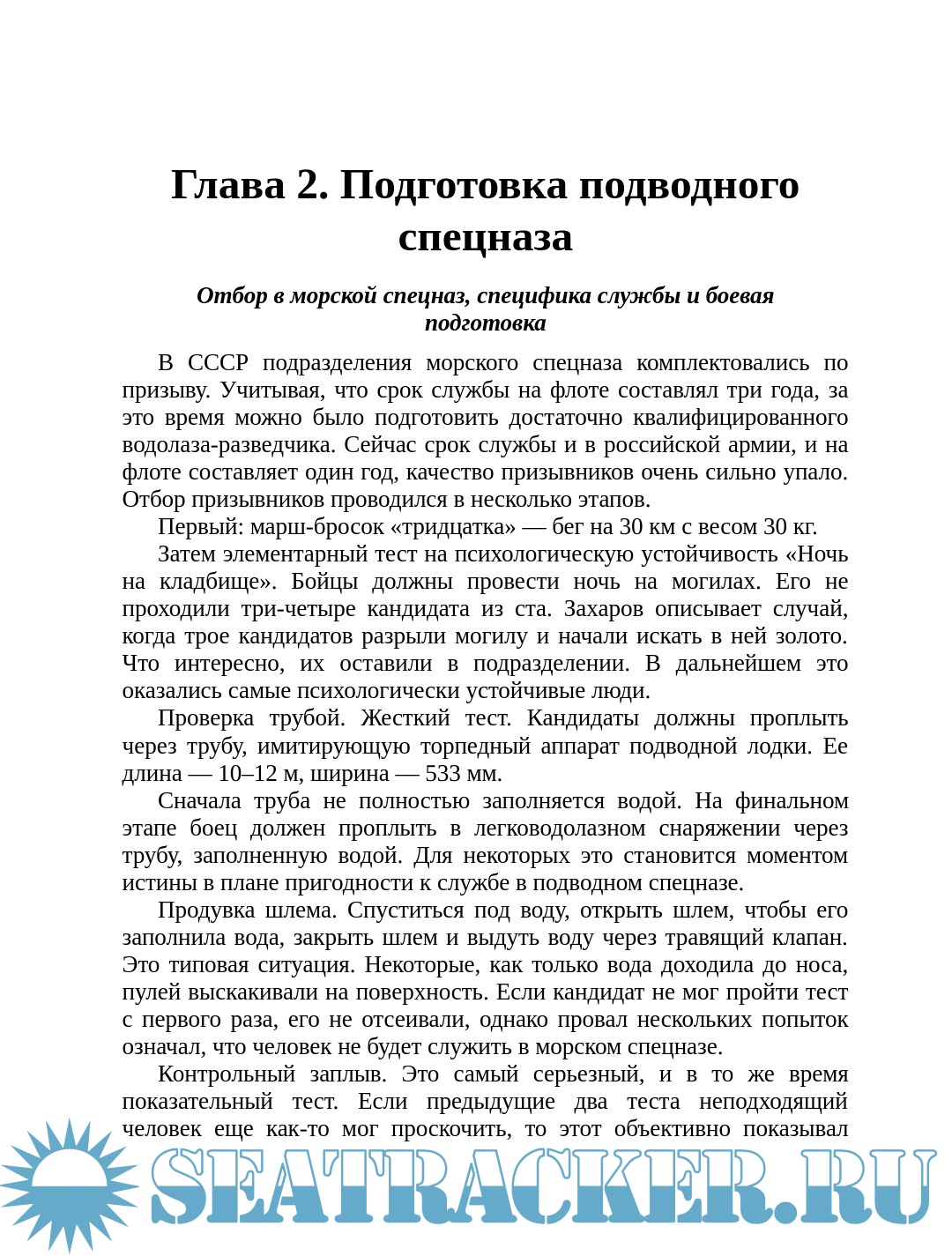 История подводного спецназа. Подготовка подводного спецназа. Боевой дайвинг. Опасные морские животные. Автономные дыхательные аппараты. Снаряжение для боевого пловца. Обучение подводному плаванию. Ножевой бой под водой. Сигналы для подводных пловцов. Элементы подводной гидрографии. Морские котики США подготовка применение. Спецназ ВМФ России. Боевые операции морского спецназа. Обеспечение высадки морского десанта. Боевые пловцы общего назначения. История 17-й бригады спецназа ГРУ ЧФ СССР. Спецназ Черноморского флота СССР в последний период своего существования (1990–1991 годы). РО ТОФ ГРУ ГШ Холулай. Отряды специального назначения по борьбе с диверсионными силами и средствами ВМФ СССР и России. Отряды ПДСС и «Дельфин» – гроза подводных диверсантов. Вооружение и оборудование подводного спецназа. Подводные транспортировщики. Сверхмалые подводные лодки. Фотографии иллюстрации.