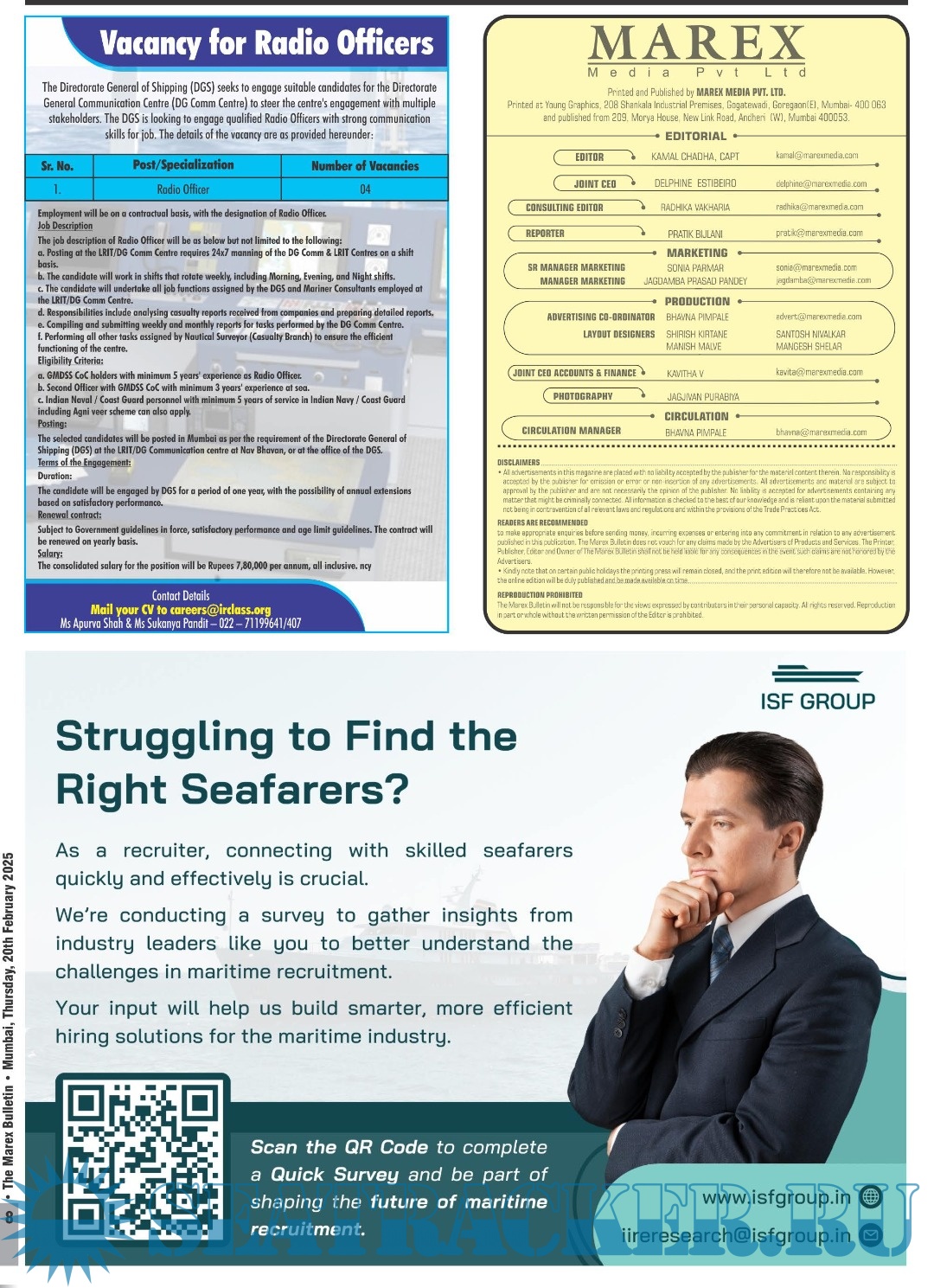The Leading magazine for seafarers to locate Ship-board Employment opportunities, Training Institutes, Shipping companies.