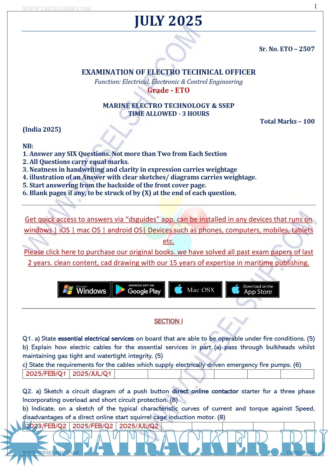 Question Paper Set for Electro Technical Officer (E.T.O) (September 2025) MMD Examinations, India
