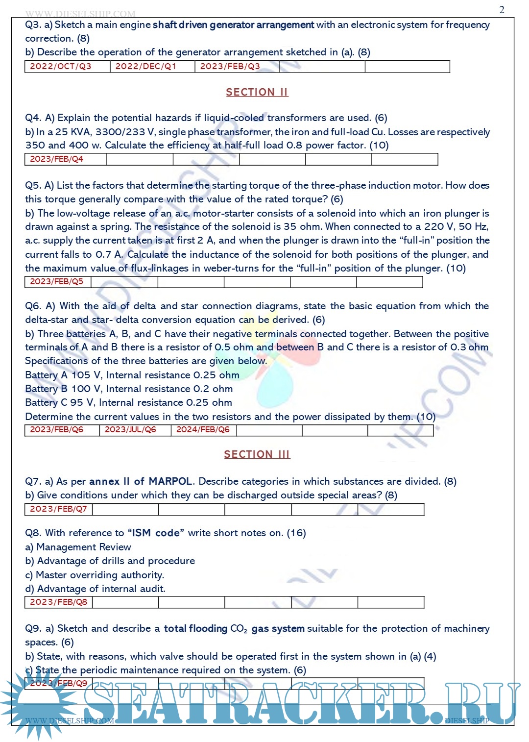 Question Paper Set for Marine Engineering Officer (M.E.O.) Class II (July 2023) MMD Examinations,…