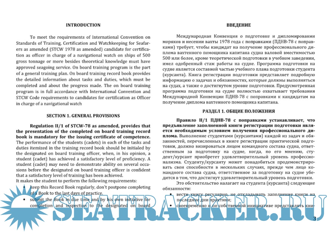 Описание: Книга регистрации практической подготовки предназначена для документирования судовой практики вахтенного помощника капитана (практиканта-судоводителя) в соответствии с требованиями Конвенции ПДНВ-78 с поправками. В ней фиксируются все учебные мероприятия, навыки, оценки и подтверждения со стороны квалифицированных офицеров и капитана судна. Книга обеспечивает подготовку к сертификации на должность офицера, ответственного за навигационную вахту на судах валовой вместимостью 500 рег. тонн и более, поддерживает высокий уровень профессиональных компетенций и соблюдение международных стандартов безопасности на море.-The onboard training record book is designed to document the practical training of deck cadets in compliance with the STCW Convention 1978, as amended. It records all training activities, skills, assessments, and endorsements by qualified officers and the ship’s master. The book supports preparation for certification as an Officer in Charge of a Navigational Watch on ships of 500 gross tonnage or more, ensuring professional competence and adherence to international maritime safety standards.
