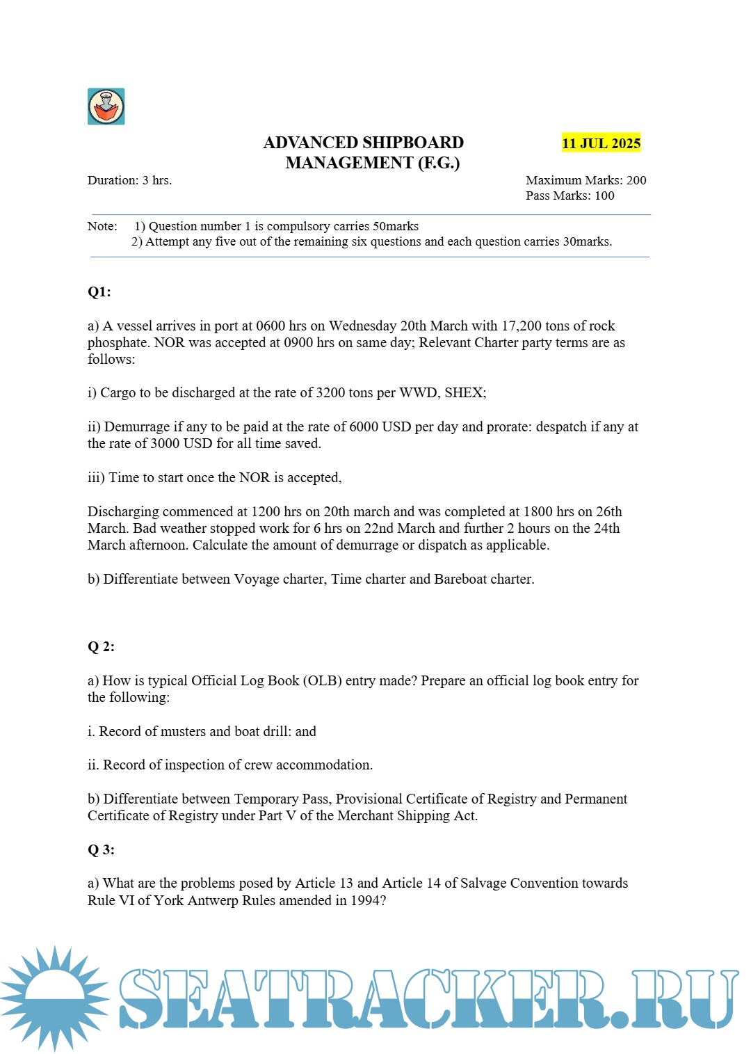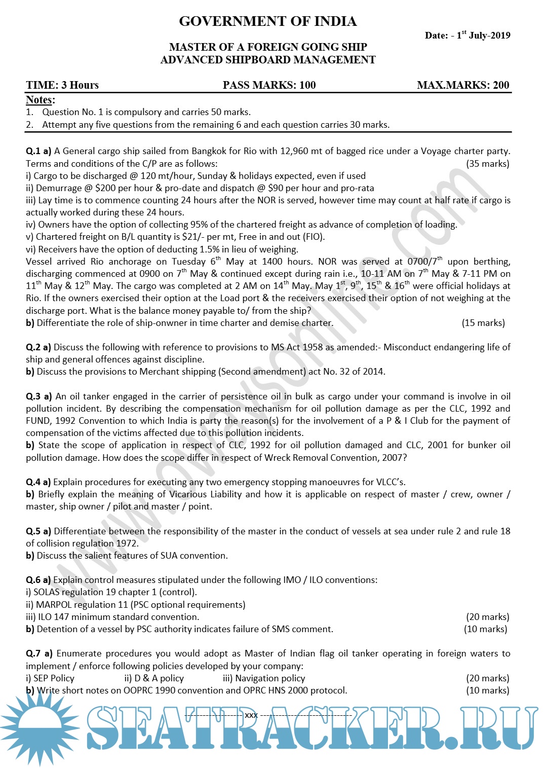 Question Paper Set for Advanced Ship Management (ASM) Mercantile Marine Department (MMD), India…