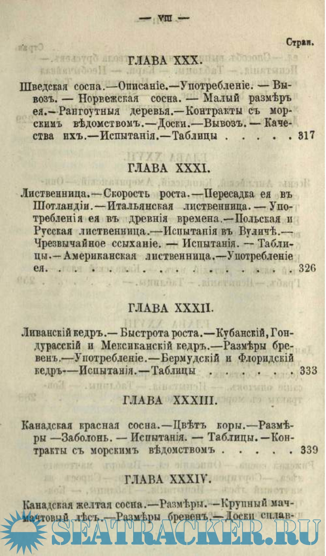 Год выпуска: 1878 Язык: Русский Автор: Ляслетт Т. Жанр: Руководство Издательство: СПб.: тип. Мор. м-ва Формат: PDF Качество: Отсканированные страницы Количество страниц: 456 Описание: Свойства и отличителыныя качества лѣса, употребляемаго для построекъ, такъ многочисленны и важны и вмѣстѣ съ тѣмъ такъ малоизвѣстны, что я, по просьбѣ многихъ друзсй моихъ, рѣшился изложить на этихъ страніцахъ всѣ тѣ свѣдѣнія по этому предмету, какія я могъ пріобрѣсти. Англійсній дубъ.—Время для рубки.-Таниинъ въ корѣ.—Деревья зимней рубки. —Свѣдѣнія о нѣкотрыхъ судахъ, построенныхъ изъ такого дуба u проч. Англійскій дуб.—Контракты по поставкѣ его на флотъ.—Спесификація брусьевъ и досокъ. Сроевой лѣсъ.—Зимняя рубка.—Естественная высушка.—Указанія какъ слѣдуетъ складывать лѣса. — Сушка. — Способъ Дюгамеля. — Способъ Финчана. — Распариваніе. — Нагрѣтыя камеры. — Обугливаніе.— Привилегированный способъ Lapparent. — Испытаніе еію въ Вуличѣ. — Опыты. — Таблицы. — Выводы изъ предыдущихъ опытовъ Редкая книга по оценке качества различных сортов дерева в применении к деревянному судостроению.