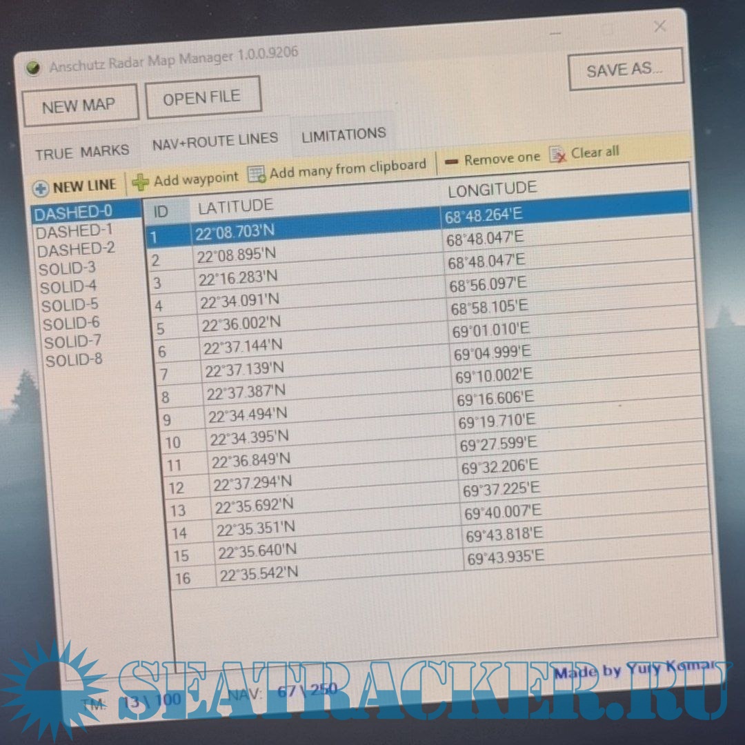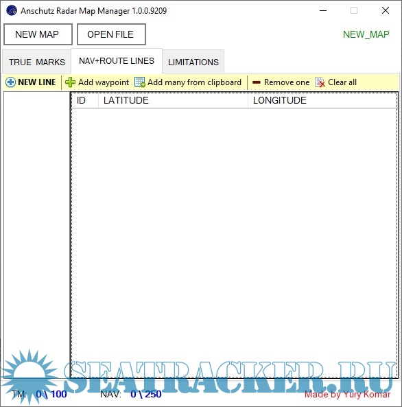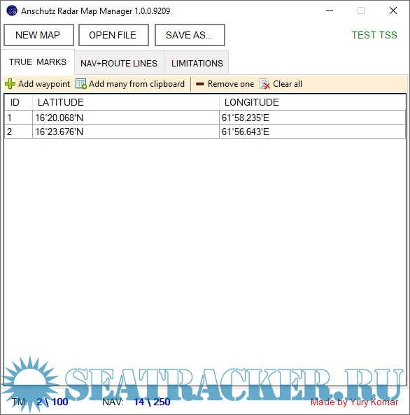 You can open an existing file for editing or create a new one. But there is no visual view on the map. There is only a simple list of coordinates, sequentially for each point. Each file has a limit on the number of lines and marks. You can see the limits in the status line at the bottom of the window.
