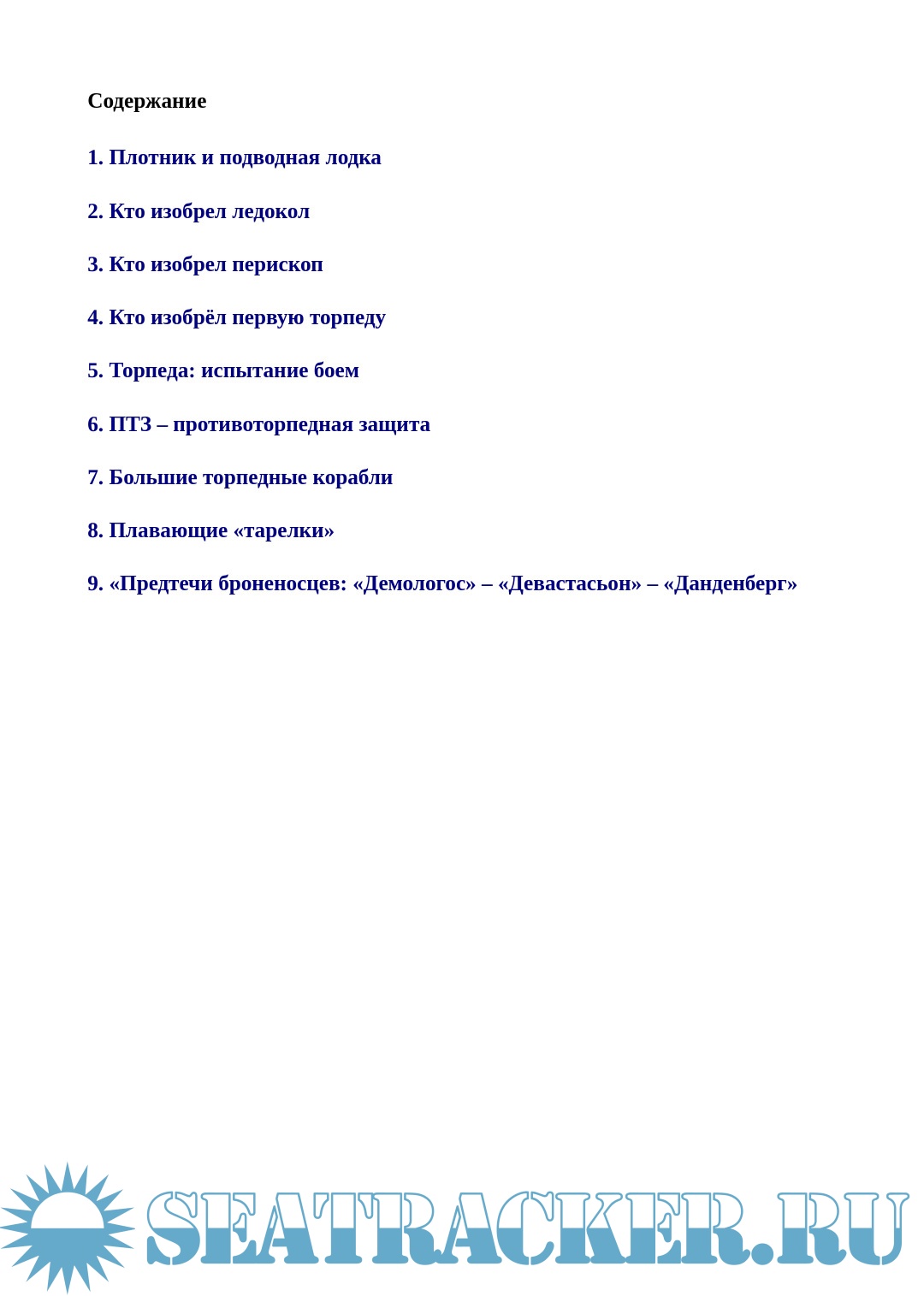 Год выпуска: 2025 Язык: Русский Автор: Тарас А.Е. Жанр: Историческое Формат: PDF, DOCx, EPUB Качество: Изначально компьютерное (eBook) Количество страниц: 337 Описание: Книга представляет собой сборник статей по истории оружия и морской техники. Содержание 1. Плотник и подводная лодка 2. Кто изобрел ледокол 3. Кто изобрел перископ 4. Кто изобрёл первую торпеду 5. Торпеда: испытание боем 6. ПТЗ – противоторпедная защита 7. Большие торпедные корабли 8. Плавающие «тарелки» 9. «Предтечи броненосцев: «Демологос» – «Девастасьон» – «Данденберг»