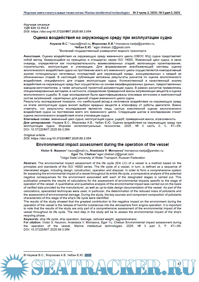 Морские интеллектуальные технологии 2025 № 3 часть 2