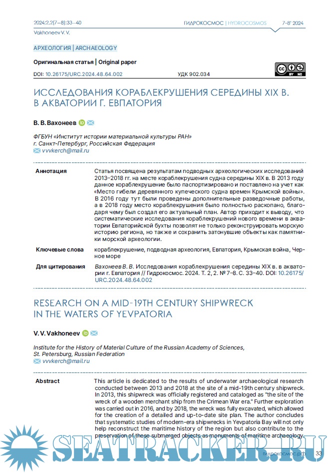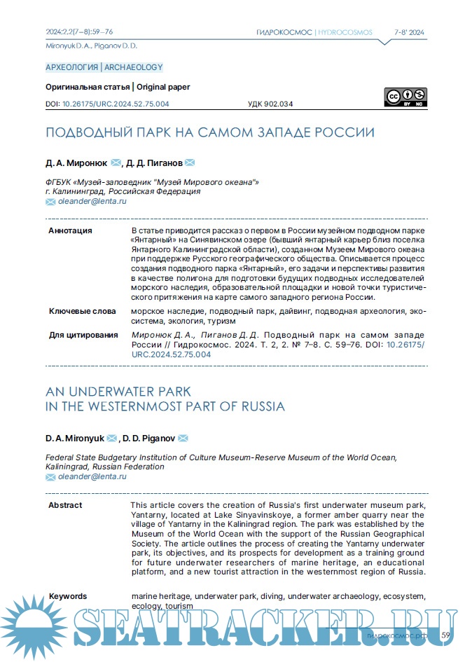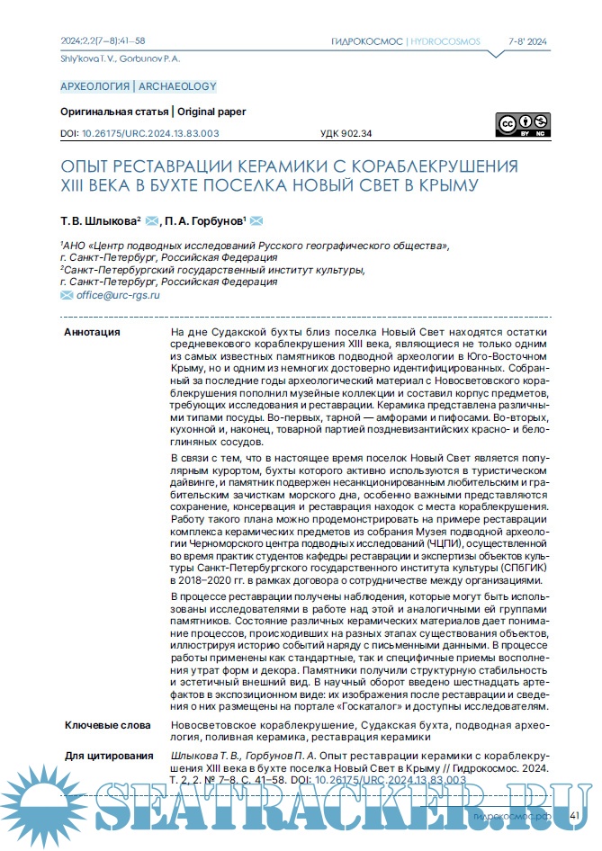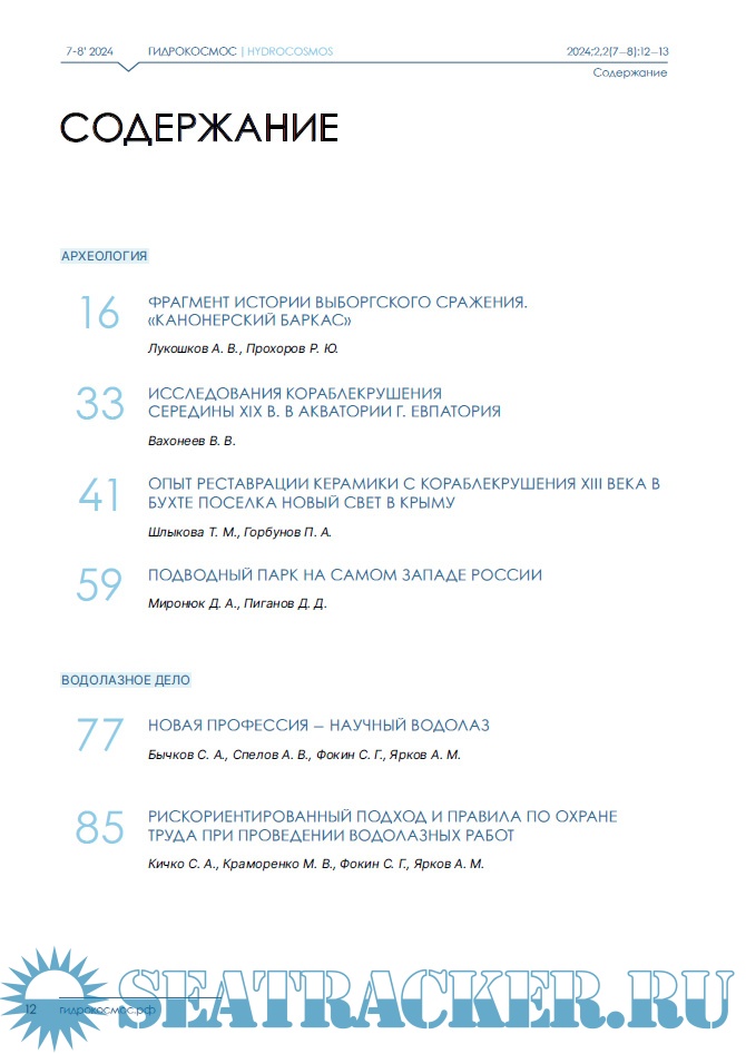 Описание: Научный журнал «Гидрокосмос» — первое в России междисциплинарное издание о подводных исследованиях. Он задуман как площадка для обсуждения научных проблем изучения свидетельств взаимодействия людей с морями, озерами и реками, исследованиям смежных занятий и ремесел, а также ныне затопленных участков суши. В повестку издания входят теоретические и методологические вопросы подводных исследований; проблемы морской археологии, связанные с консервацией и реставрацией предметов, обнаруженных в воде; вопросы сохранности объектов культурного наследия; вопросы технического, медицинского, организационного и юридического обеспечения подводных археологических работ. Журнал «Гидрокосмос» создан как инструмент для укрепления сообщества теоретиков и практиков подводных исследований, для обеспечения синергии в дальнейшем развитии отрасли в России.