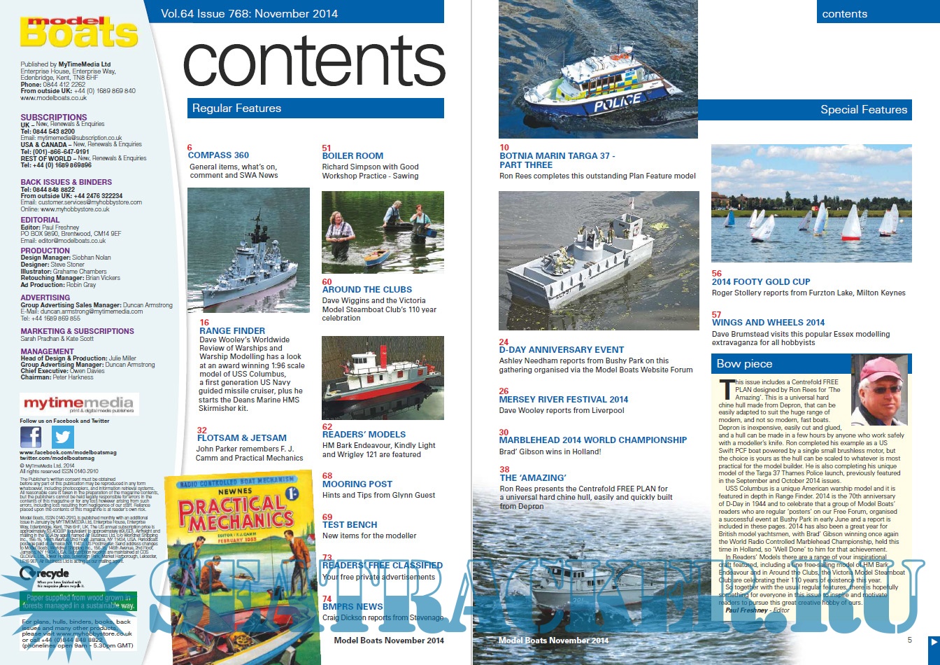 Description: Model Boats magazine is a practical and informative read for those with a love for the hobby. It covers the latest news and views from the various clubs and associations around the country, useful hints, tips and step by step guides for those interested in the art of constructing a model boat as well as tests and recommendations of new boats and tools. Floating along behind these are great special features examining in depth different models from narrowboat to destroyer!
