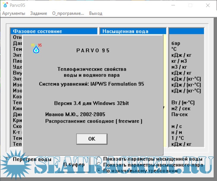 Описание: Программа предназначена для расчёта и анализа теплофизических свойств воды и водяного пара в широком диапазоне температур и давлений на основе международной научной модели IAPWS-95 (International Association for the Properties of Water and Steam).