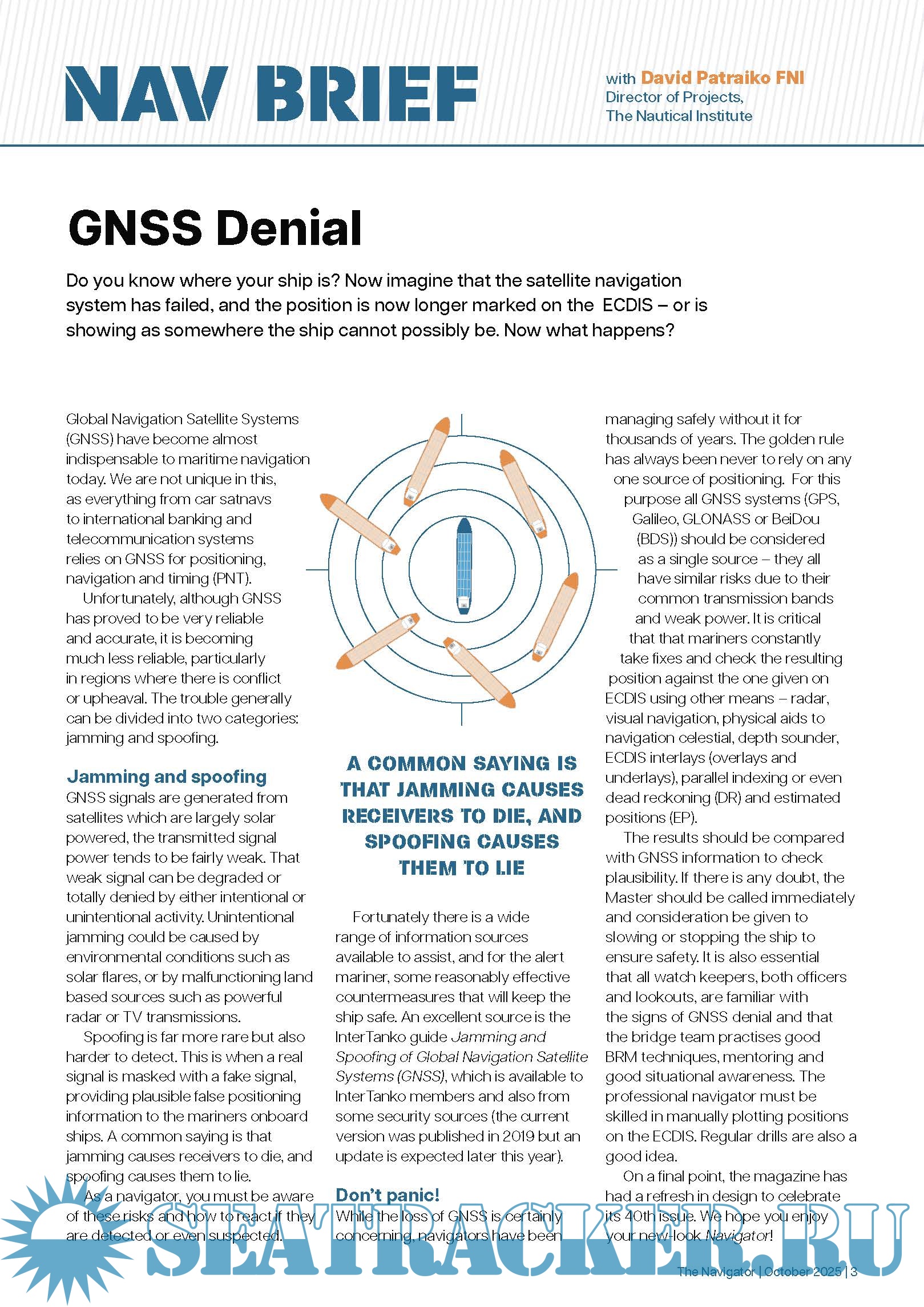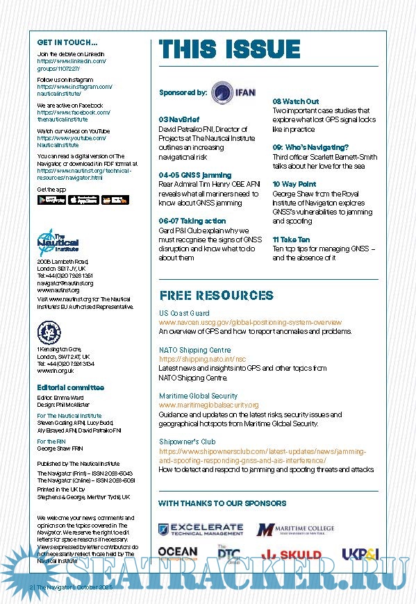 The Navigator a publication from The Nautical Institute that champions the role of today's professional marine navigators. Published in association with the Royal Institute of Navigation. A free publication from The Nautical Institute that champions the role of today's professional marine navigators.