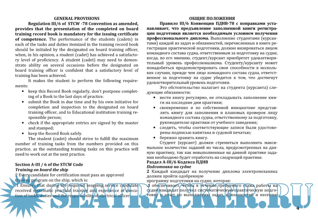 ON Board Training Record Book for Electrical Engineer Cadet - А.В.Игнатенко,А.В.Мокин [2013, PDF]