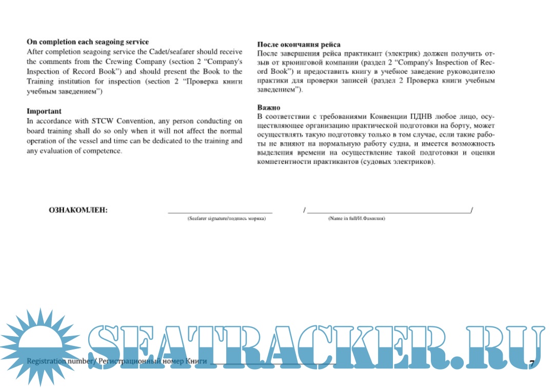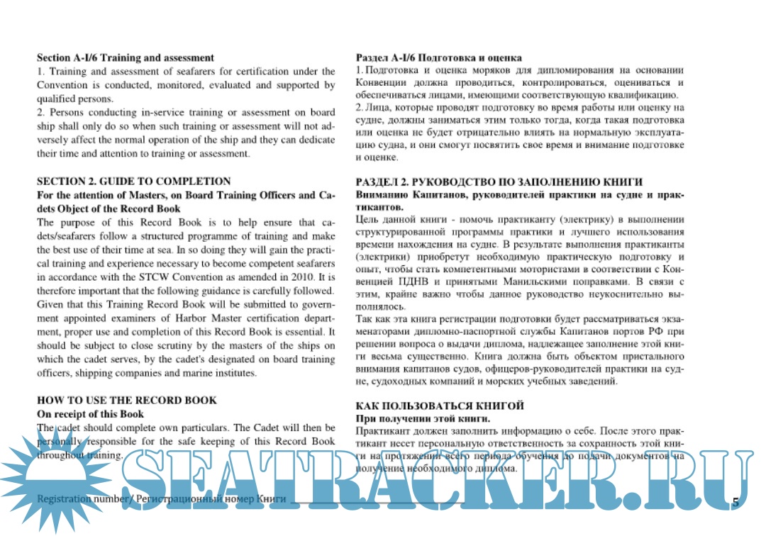 Описание: Эта книга регистрации практической подготовки судовых электриков предназначена для структурирования обучения и контроля навыков моряков в соответствии с требованиями Международной Конвенции ПДНВ-78 с поправками (STCW 1978, amended 2010). Она объединяет теоретические знания и практический опыт, необходимый для получения квалификационного свидетельства электрика на морском судне. Книга детально описывает задачи и обязанности, которые должны выполняться под руководством опытного офицера, а также фиксирует уровень освоенных компетенций. Практикант обязан вести книгу регулярно, своевременно предоставлять её на проверку и обеспечивать достоверность записей. Руководители на борту и капитаны оценивают прогресс, подписывают записи и контролируют выполнение обязательных заданий. Книга охватывает обязательные требования для судовых электриков, включая работу на судах с мощностью главной установки 750 кВт и выше, а также фиксирует прохождение обязательного ознакомления с безопасностью и техническими характеристиками судна. Она является официальным документом, подтверждающим квалификацию и подготовку морского электрика.