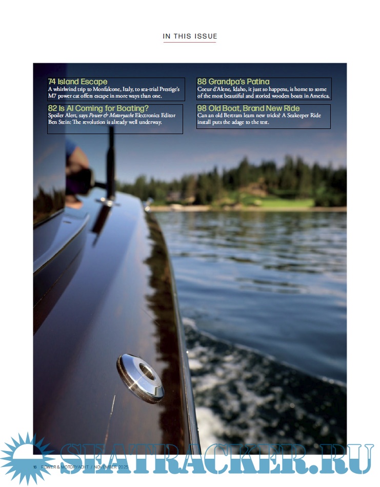 Description: Power & Motoryacht is the leading marine magazine for powerboat owners with boats over 25 feet. Each issue is fact-packed with information on boats and boat maintenance, new boating equipment, advice, and filled with beautiful color photography of the latest boats and boating destinations.