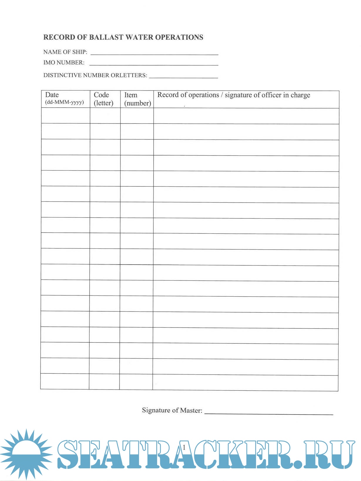 Additional info: Page number 1 named "RECORD OF BALLAST WATER OPERATIONS" must be printed 30 times to obtain the FULL volume of the document.