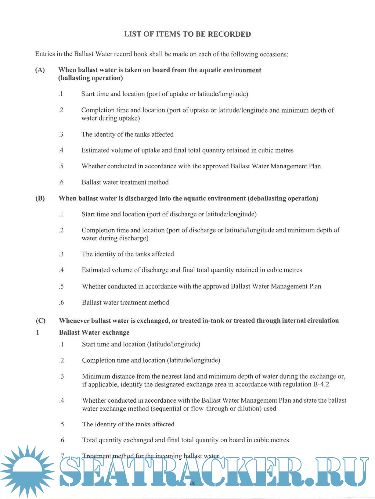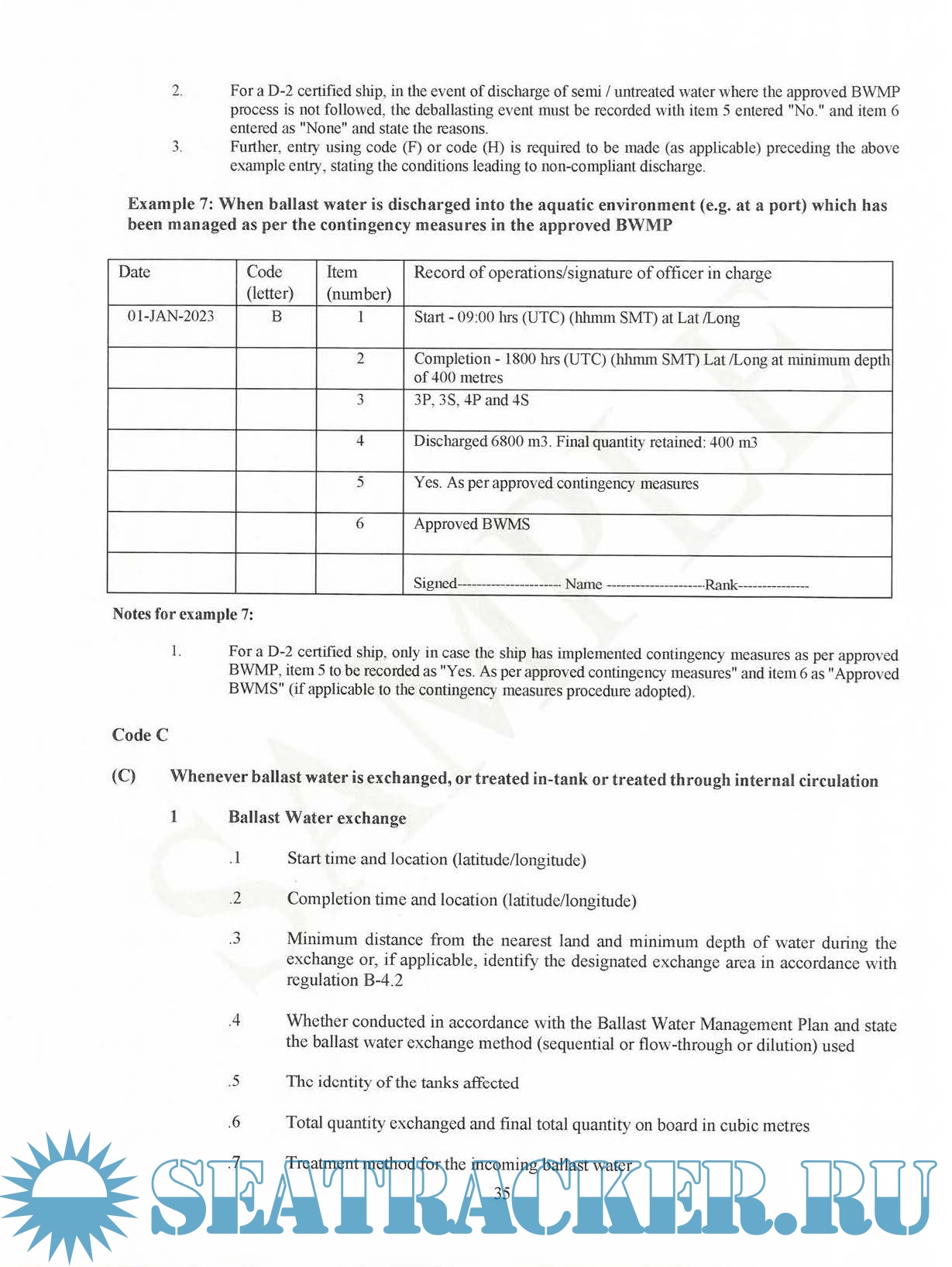 Ballast Water Management Record Book requirements - DBS [2022, PDF]