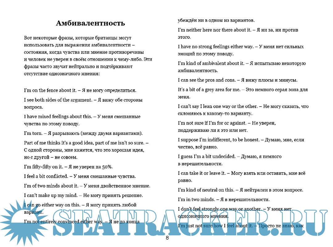 Description: Практическое пособие по английскому языку для жизни и общения — с живыми фразами, типичными диалогами и тонким чувством стиля. Без иллюзий и маркетинговой чепухи: чтобы говорить по-английски, нужно учить, запоминать и использовать. Автор с юмором и на личном опыте проведёт читателя от простых выражений до сложных ситуаций — с пользой, без занудства и с прицелом на реальное общение.