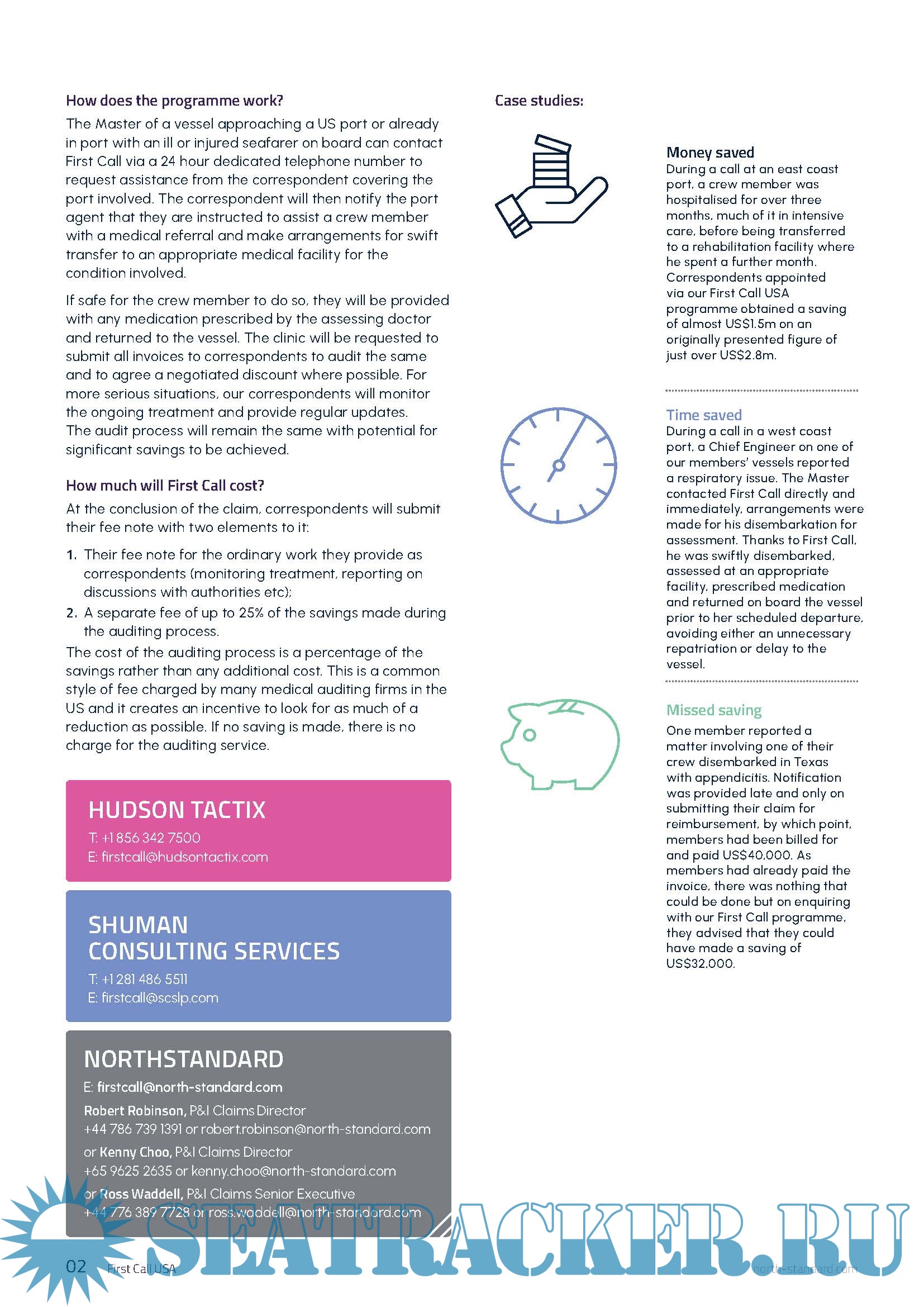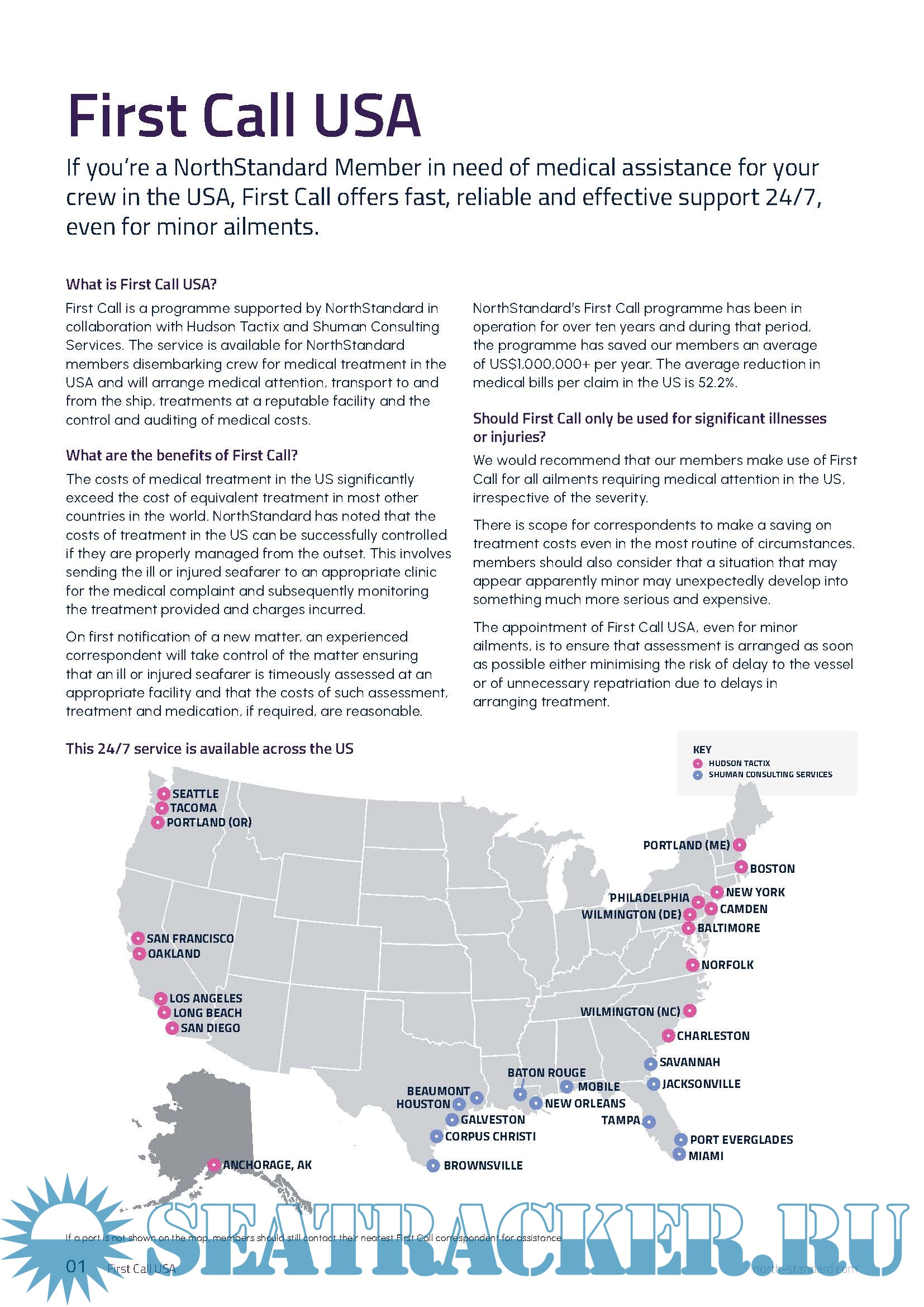 Description: If you’re a NorthStandard Member in need of medical assistance for your crew in the USA and Brazil, First Call offers fast, reliable and effective support, even for minor ailments.