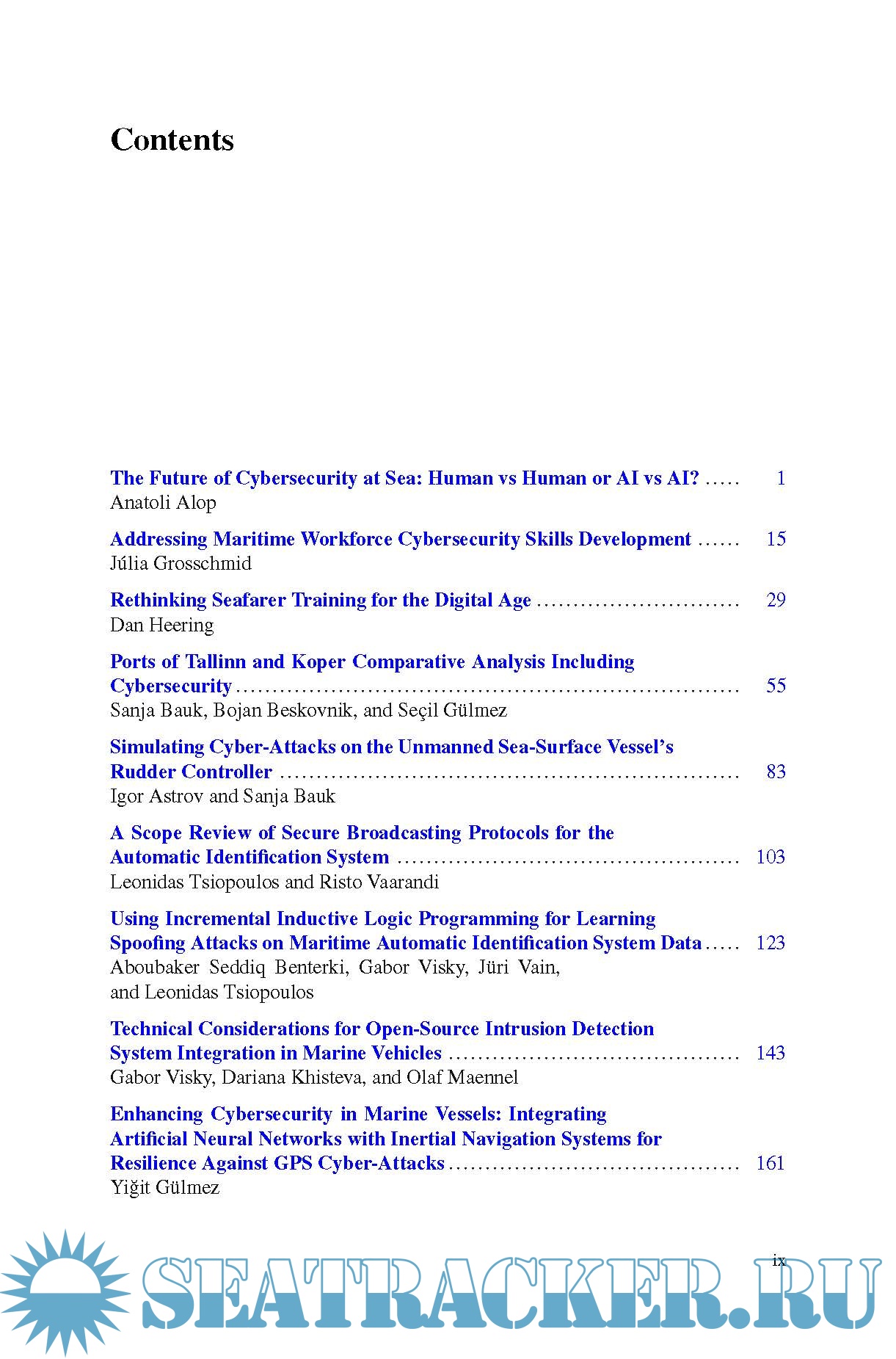 Description: This book highlights the importance of cybersecurity in the maritime domain, including the human and societal aspects of both cyber-crime and cyber-defense. The authors present mechanisms for early detection and prevention of cyber-attacks, as well as security protocols based on testbed nautical simulator experiments, machine learning algorithms and artificial intelligence applications.