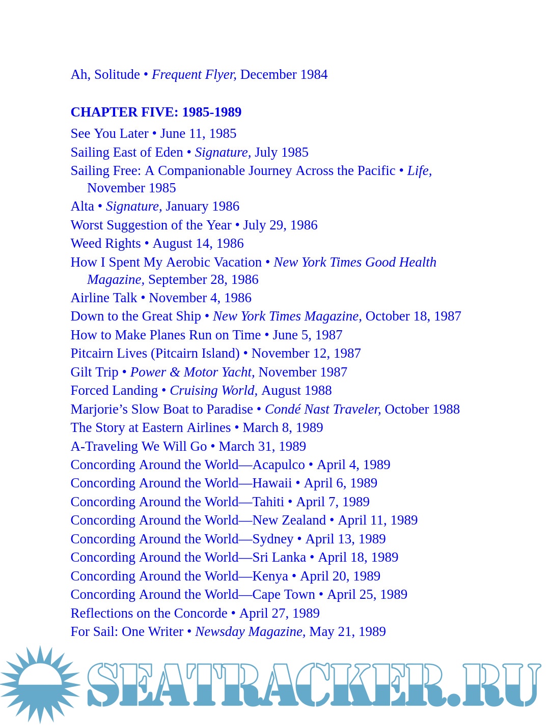 Description: An elegant jet-setter with a flair for literary journalism, Buckley had few rivals in the art of travel writing. He took first place in the Magazine Article on Foreign Travel category in the Lowell Thomas Travel Journalism Competition for eight pieces written while “Concording around the world” in 1989. A master storyteller, he adeptly wove devices of fiction together with reportage to craft entertaining pieces full of exuberance and authority. Being a Bach afficionado, he composed his sentences for a well-tuned ear.