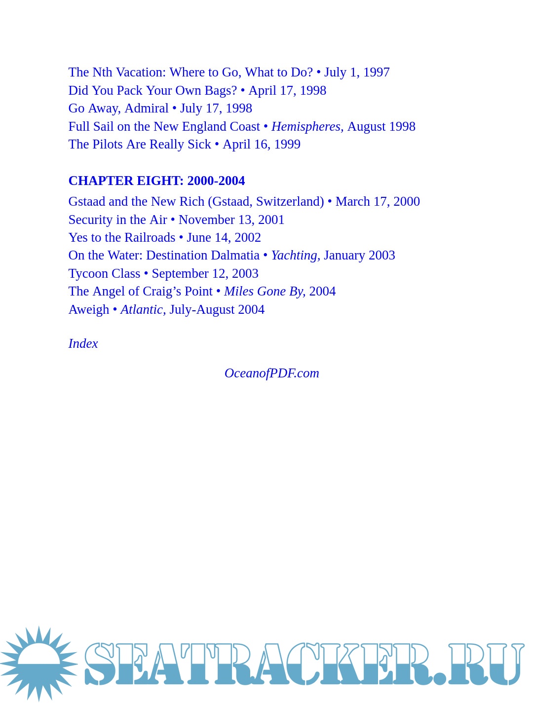 Year: 2023 Language: English Author: Meehan B. Genre: Historical Publisher: Encounter Books Format: PDF, EPUB Quality: eBook Pages count: 469 Description: An elegant jet-setter with a flair for literary journalism, Buckley had few rivals in the art of travel writing. He took first place in the Magazine Article on Foreign Travel category in the Lowell Thomas Travel Journalism Competition for eight pieces written while “Concording around the world” in 1989. A master storyteller, he adeptly wove devices of fiction together with reportage to craft entertaining pieces full of exuberance and authority. Being a Bach afficionado, he composed his sentences for a well-tuned ear. Buckley’s talent for arranging a mise-en-scène stands out in accounts of riding the Orient Express, skiing at Alta, or vacationing at Barbuda. Though himself a central character in the story, he never dominates it. He wrote candidly about travel misadventures, as when his sixty-foot schooner broke down in the Bahamas and was towed to Miami by a Coast Guard cutter, or when a malfunctioning compass landed his boat on a rocky shoal off Rhode Island and the Coast Guard said, “Sorry, we can’t help you.” He also took a gimlet eye to the travel industry and a discriminating palate to airline food, suggesting that airports sell “a really good box lunch” with celery rémoulade, fresh figs, and a nice Bordeaux. Getting About is pure enjoyment, but it also broadens the significance of Buckley’s œuvre. Along with Bill Meehan’s illuminating introduction, this delightful collection helps preserve Buckley’s legacy as his centenary, in 2025, approaches.