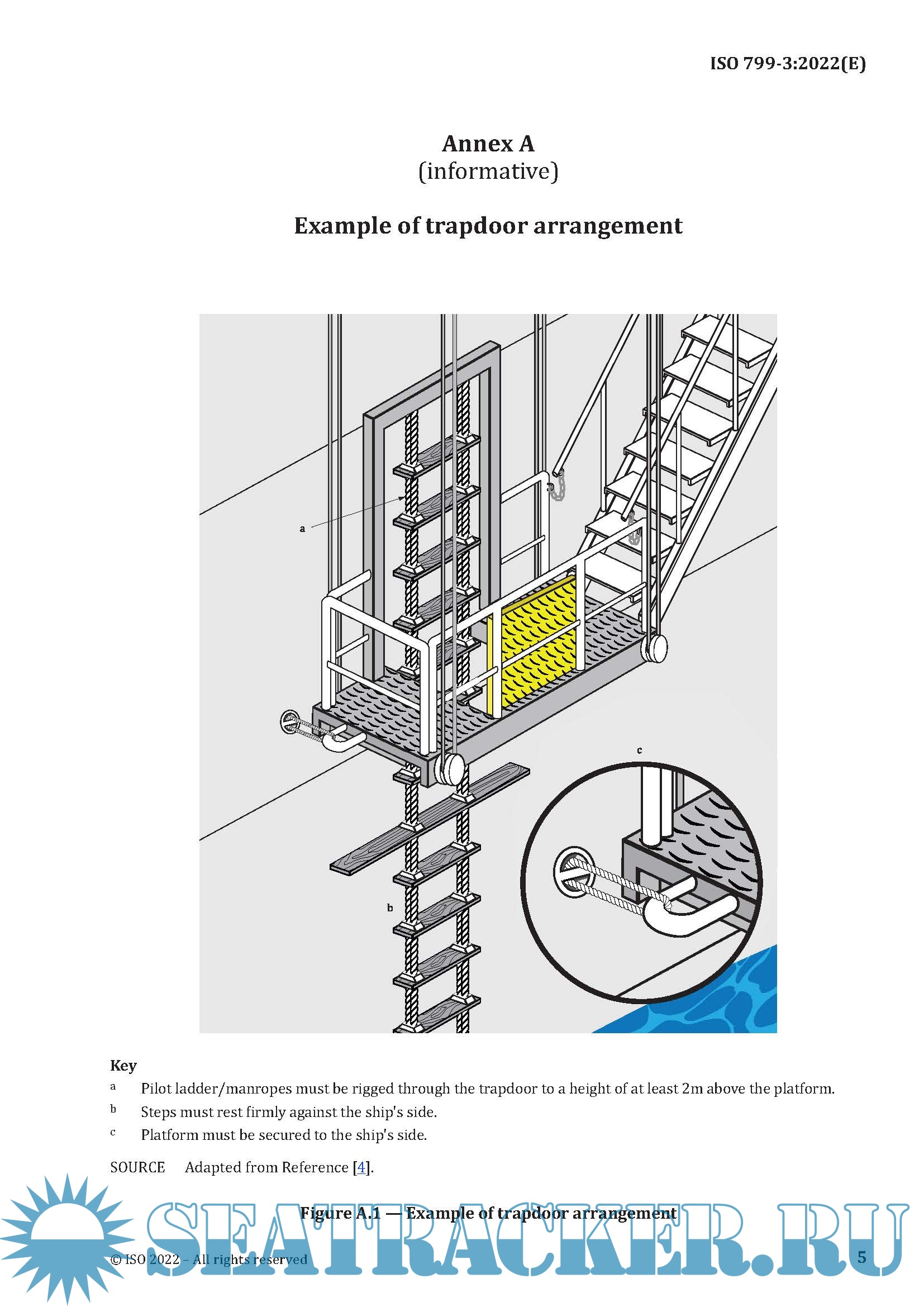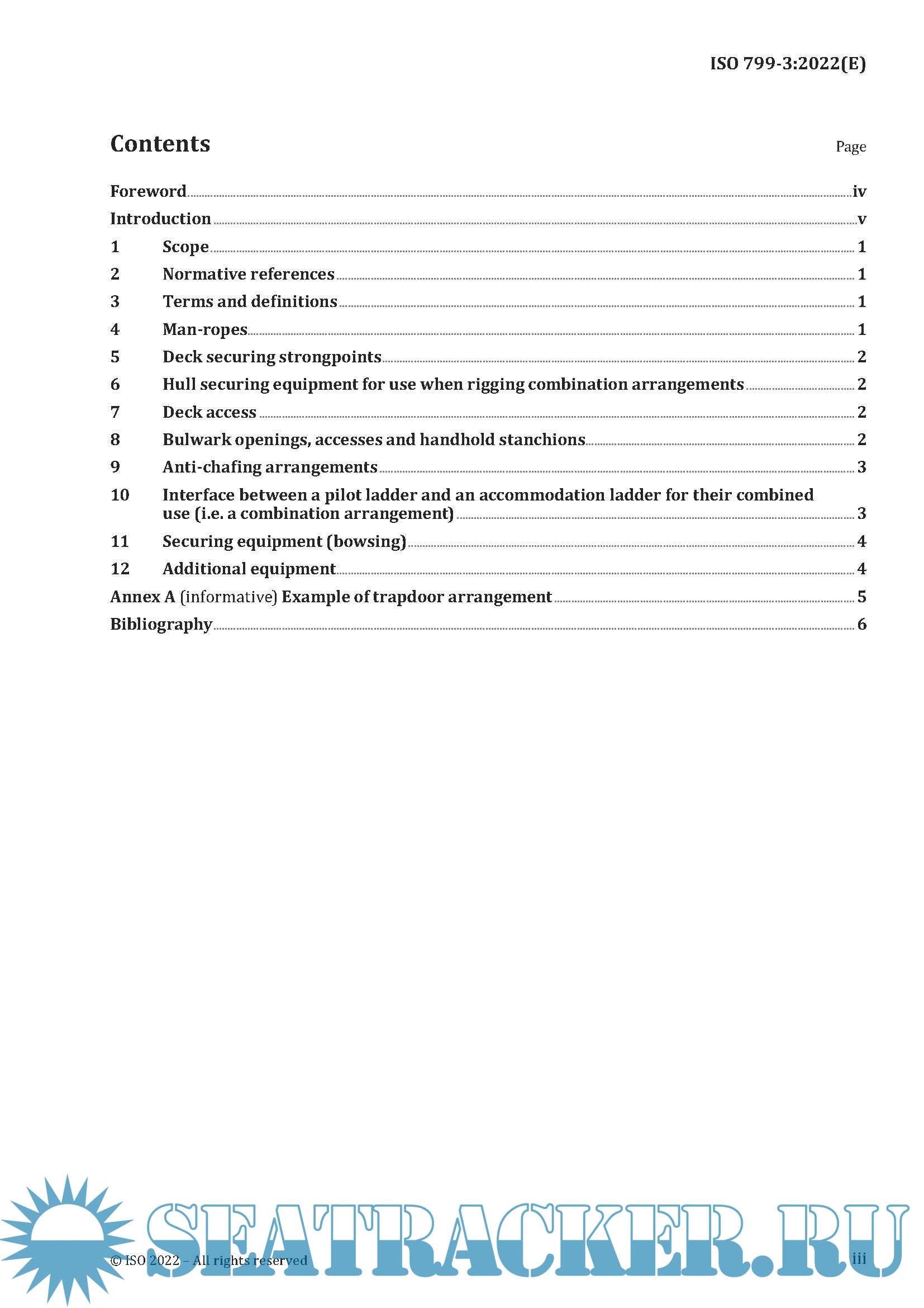 Description: This document supplements existing IMO requirements for pilot transfer arrangements and associated equipment. The intent of this document is to clarify such requirements, thereby ensuring arrangements and equipment efficiently fulfil their purpose of enabling pilots to embark and disembark safely. It complements ISO 799-1 and ISO 799-2.