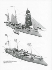 18 листов цветных выкроек и описаний для изготовления бумажной модели канонерской лодки ''Кореец'' в масштабе 1:200