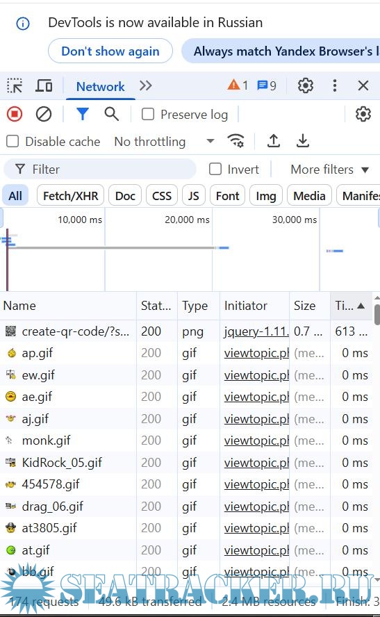 Перейти во вкладку Network и нажать F5