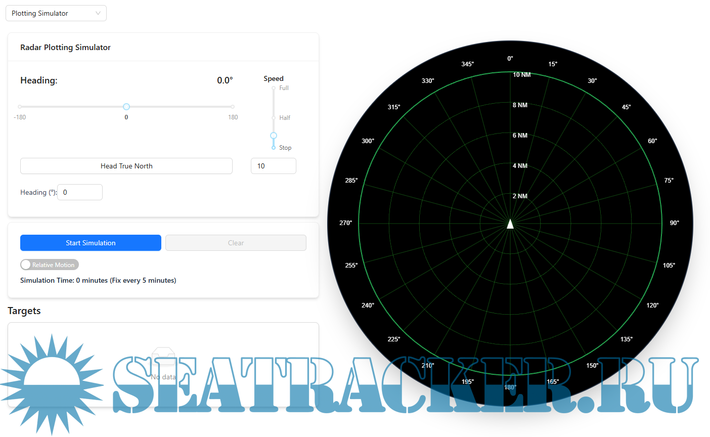 Maritime students can practice Radar sailing and the use of ARPA at home on their own PC. It is assumed that the user is familiar with Radar and Plotting to find other vessels' course and speed, and ARPA theory.